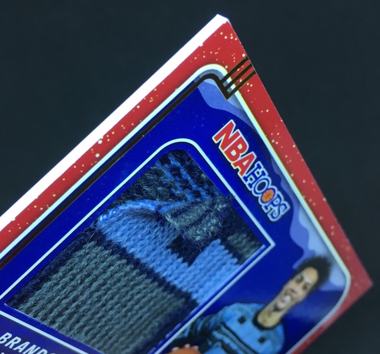What's Buzz-worthy: You might have seen a slightly different looking box out there for NBA Hoops this year if you're hunting at retail and this one is a second helping of the brand but with a wintery feel similar to last year. This time around the cards are all a little iced over with some snow falling over every single card -- just not with visible snowflakes like last year. It's a texture applied to all cards here, though it's easier seen on some than on others among the inserts. New this time? There are photo-shoot worn ugly NBA sweater cards possible among the hits and that was what I landed in the guaranteed hit pack here. See how the fabric is sticking out some? That's because this particular piece had two layers of fabric to make up the swatch. (I didn't pull it out but probably could -- it's probably a folded layer at the bottom of the swatch window. See the gallery.) There are 41 players who donned sweaters for this set and there are also 18 dual-sweater cards in the mix. ... As said for my standard break, NBA Hoops isn't a high-end brand but the NBA Rookie Card arrival of Zion Williamson might make you think it's stepped up a bit. There was no Zion in this box, either, but it did include a new other high draft picks and some more than once. The basic volume here was pretty much identical to last year and the design for the base cards has a very similar feel but perhaps with a slicker, more Prestige-like at times, design. It appears the Purple cards are the only parallels in this format while the other possible hits include Winter versions of Rise N Shine memorabilia cards and standard Great SIGnificance autographs. It's a simple lineup for the base, parallels and inserts that could make it a do-able master set with the Purples the biggest challenge, though I'd bet everything might be a tad rarer than people might expect for a basic flagship-style release like this. All in all, I think this might be a better rip than basic blasters also because there probably just isn't as much made and the RCs like Williamson do stand out a little more than others who get iced here.