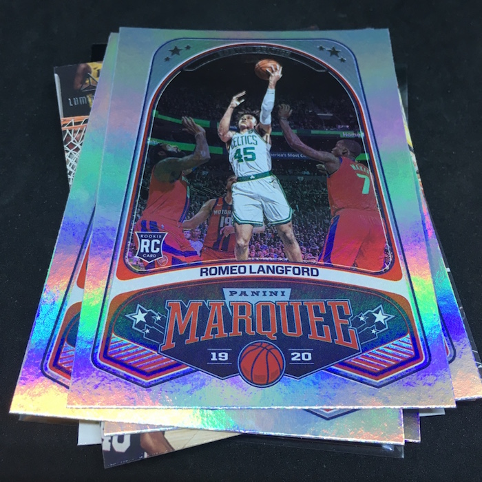 What's Buzz-worthy: My finale for this one is a bit of a rarity based on my experience ripping these -- it's the rare box that didn't include any Ja Morant or Zion Williamson cards. It still was pretty strong with some high draft picks appearing more than once and with a pair of Luka Doncic appearances -- one being on a rarer Optichrome-stock Crusade card that helps. This is my 10th break of blasters here ... and it's (I think) the only one to get less than an A grade. Why? There's so much to be found here -- and most boxes will deliver some surprises. One thing that did surprise me here? No hits out of 10 blasters from a few different times of digging in. This may not be the most-valuable box for singles -- they arguably deliver too much too easily, so the volume made and volume available can pile up -- but at some point this one will be a fun rip in the future perhaps moreso than now. Why? This one will always be a box that can deliver today's popular RCs in volume ... and at some point boxes of 2019-20 NBA stuff will be tougher to find (singles, too) than it is now. I think I generally did better with Mosaic this year but this one was more fun to rip into in some volume.