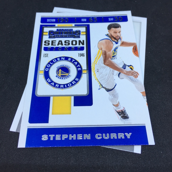 What's Buzz-worthy: If you're a regular reader, you probably know that I'm perhaps established as not that big of a fan for this brand overall (any sport) as it seems like it's one that's more about its autographs than everything else -- though NBA Contenders doesn't deliver as much ink as other sports in the hobby format. But, the blaster boxes of this one (at least in this sport) seem to be loosening that notion up a bit. You still get a ton of base cards compared to anything else here, but the inserts really do break up the base routine. (So if you're on the fence about the base design like me it may not be that comfortable of a rip beyond inserts.) You don't get a ton of them -- this is about the same as last year -- but the inserts are the only way you'll regularly find rookies here other than the one hit per box. I'd imagine this brand being a lot stronger if it had some kind of format-exclusive every-pack rookie presence -- something like a Dollar Tree component. (That might make it an A+ in this format.) This time the hit was a Rookie Ticket Swatch but there are autographs and dual-mem cards (and patches) possible here. There are Green Shimmer on-card autos only found in retail which can make for a scorcher of a box if you land one of those compared to a normal one. I thought my Zion-less NBA streak this year was coming to an end with the Pelicans logo the first thing I saw on the back of my hit here, but I clanged it off the rim as it wasn't the No. 1 pick. That pushed me to 0-for-120 packs this year across several brands. The Antetokounmpo and Abdul-Jabbar sightings here were nice but not overwhelming value-wise in my mind while the Durant Nets card looks good, too. This brand is one where people rip hobby boxes hard for their solid flow of ink -- I'd rip in that direction if you're interested.