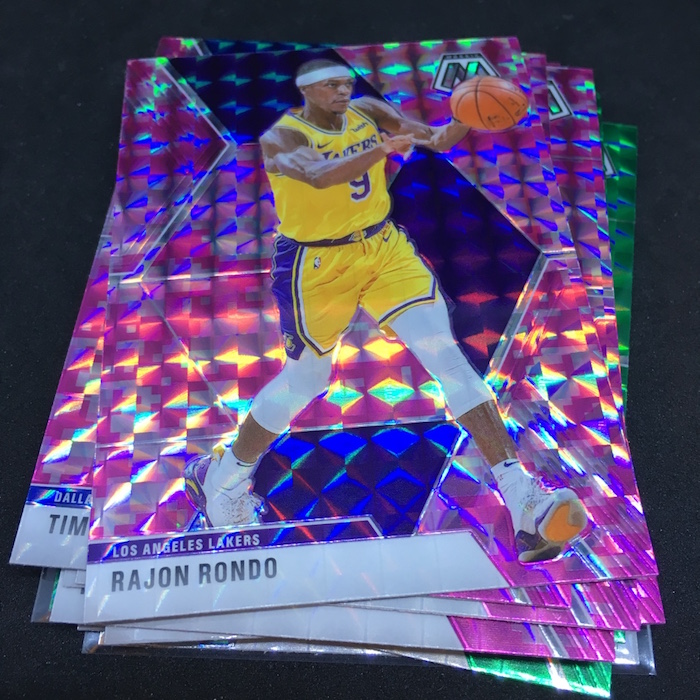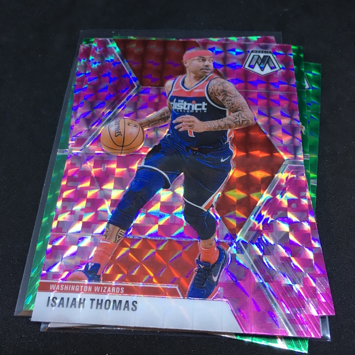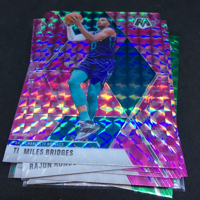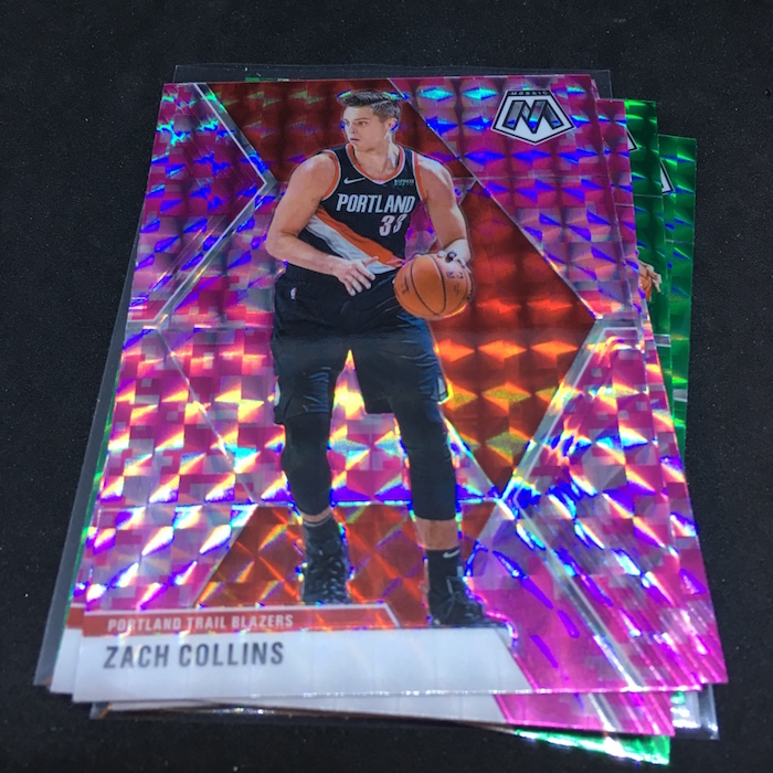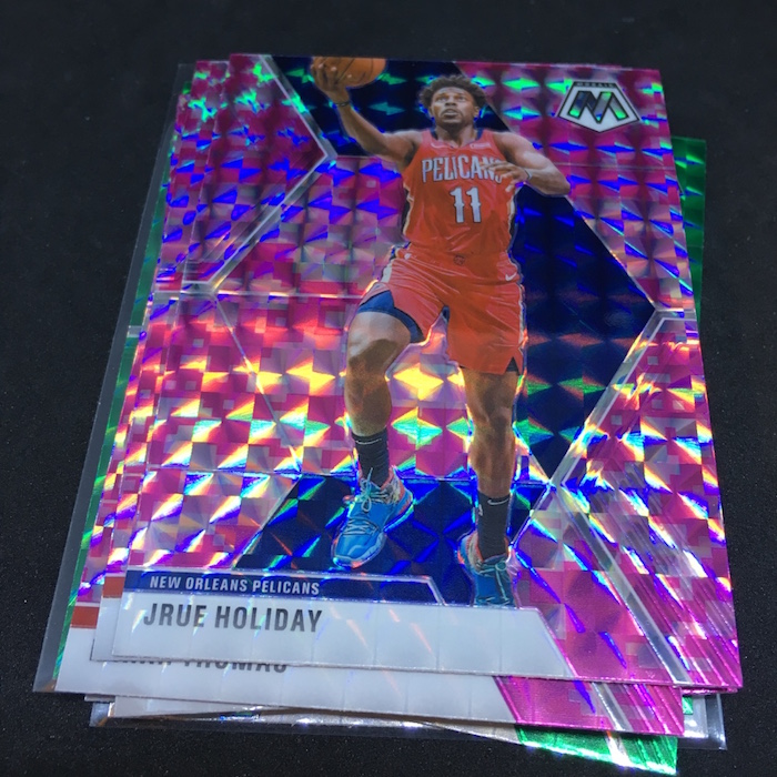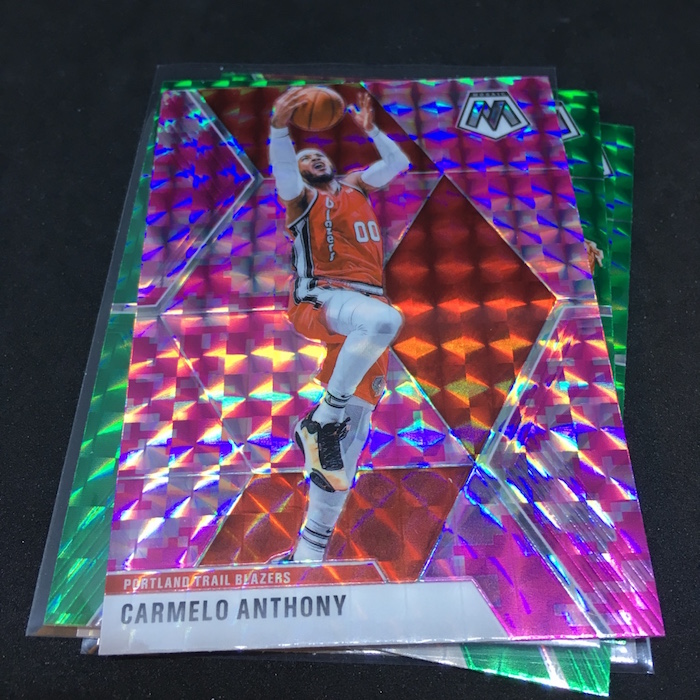 Pink Camo Mosaic Prizm parallel (10) – Carmelo Anthony, Isaiah Thomas, Zach Collins, Jrue Holiday, Tim Hardaway Jr., Rajon Rondo, Miles Bridges, Kenrich Williams, Spencer Dinwiddle, Danuel House Jr.