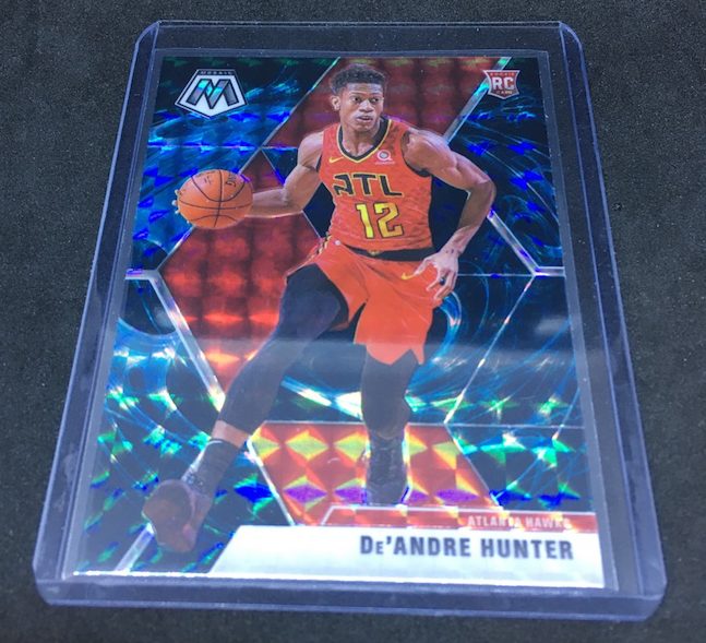 What's Buzz-worthy: I thought these were long gone from retail but there's apparently a second wave ... and I saved none for the kids last week so you'll be seeing a few of these here in the next week or two. This box? It was probably the biggest one of the bunch thanks to a Genesis parallel of De'Andre Hunter the third-highest scorer for the Hawks as a rookie this season and the fourth-overall pick in the draft last year. That card alone pays for this box and perhaps a couple more -- and maybe a lot more if graded. Had it been a Zion Williamson card? Well, those have pushed $5,000 as Genesis parallel cards are rarer finds but not numbered. These NBA megas have literally double what can be found in football megas at Walmart (also reloading) and they are a solid break across the board even if you get a weaker box. This one had an iffy bunch of base veterans (a couple names) and some solid RCs and Rookie Debut cards here. The rest of the inserts were very consistent with past breaks (I've done many ... click around here) and all could have been shots at pricey names but those were a little more elusive this time. The only bummer here? For some reason, Walmart upped the prices on them a tad knowing people would just be clearing shelves. (Guilty as charged this time.)