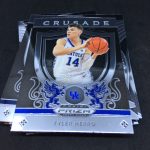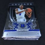 What’s Buzz-worthy: I spotted not one but two full trays of this one -- blasters and value packs -- out in the wild but simply grabbed just one blaster -- and it paid off not with a Zion Williamson card but one of the rarer parallel types found in this format, an Orange Pulsar Prizm limited to only 20 copies. That came in my first pack and there was some type of parallel in every pack after that. The Blue parallels are only found in this format and this box showed all of the subsets in the basic 100-card set, Crusade and All-Americans. Every card in this release is a newcomer -- it literally notes on the box that every card is a rookie -- and these boxes are vanishing fast because of a few of them -- finding full trays will not be (and isn't in most places) the norm. Had that Orange been a Williamson it would have paid for about 11 boxes ... or more ... based on recent eBay sales. The power of Prizm -- color parallels and autos -- should be on full display here and key names have more than one appearance in the 100-card set, so you could have boxes that deliver big names a few times ... even in blasters.