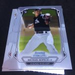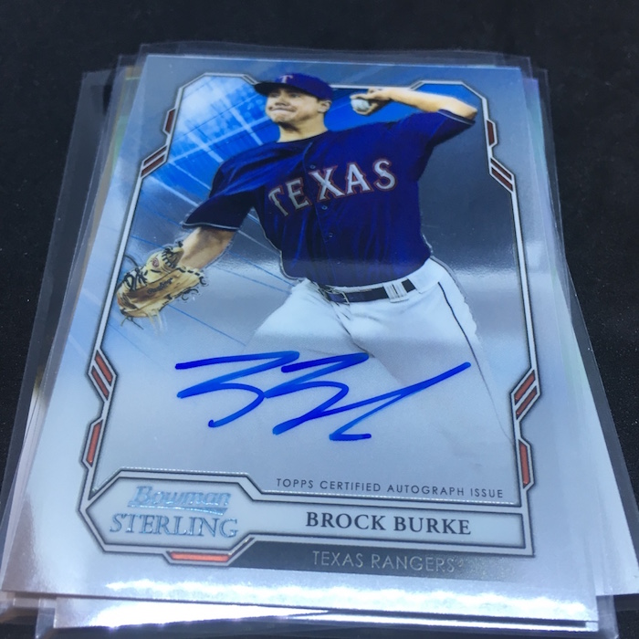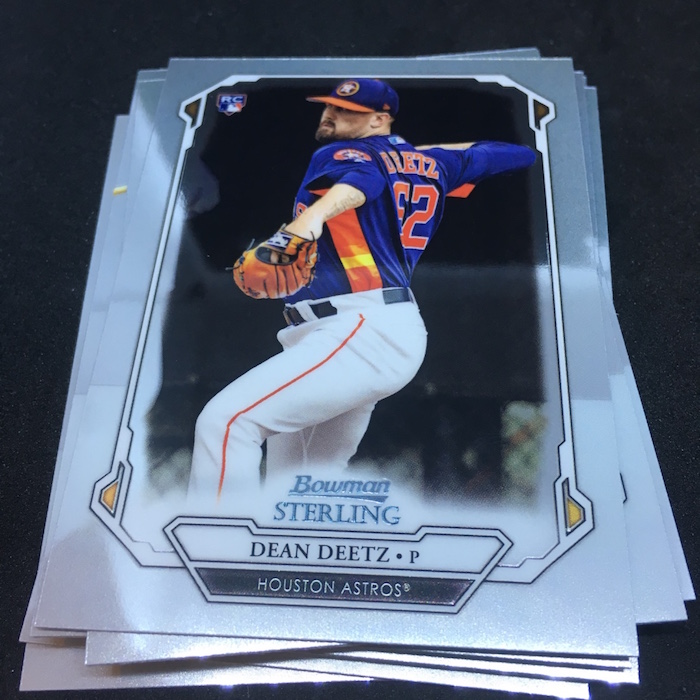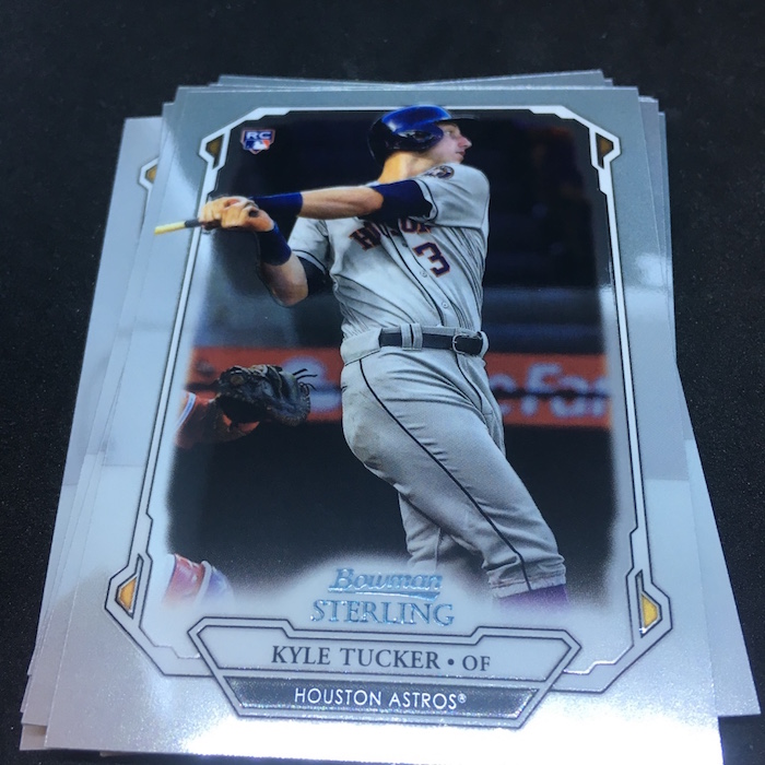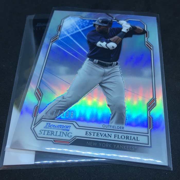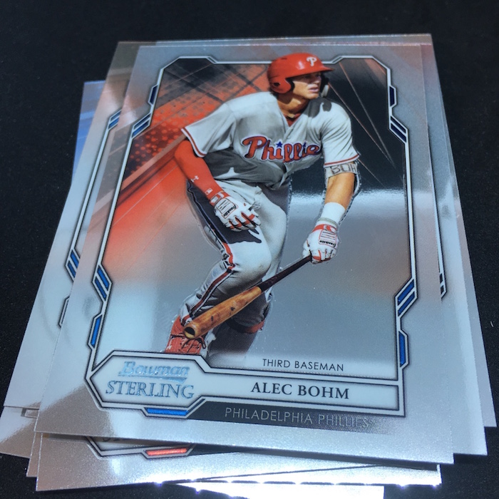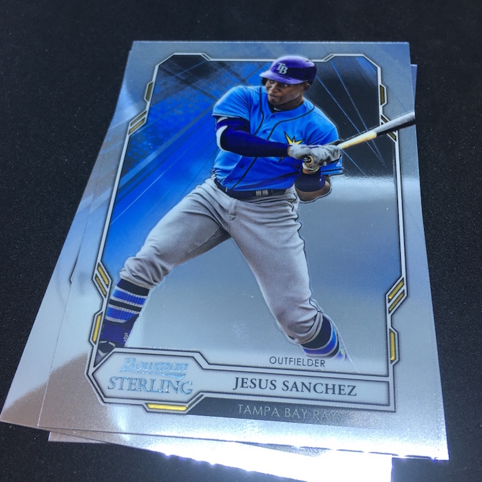 What's Buzz-worthy: A glance at the odds shows how this box might be better than others out there beyond its obvious Fernando Tatis Jr. highlight -- that's a one in 21 packs find, by the way. The Gold Sterling Retrospect card is one in 84 packs -- one in 17 boxes -- while even the standard base card Refractor isn't in every box at one in six packs. (I'm sure some type of Refractor is found in every box.) The Gold auto is one in 38 packs and the Refractor auto is one in 13. Statistically, this box delivered better than it should have and the Tatis gets it a higher mark in my book. Without it and some of the rarer inclusions here? Feels pretty average. The base card design here is very simple -- perhaps too simple -- but that might be a move to make it more traditional for Bowman and a little less like the previous incarnation of the brand, which was at times complicated on the aesthetic side. The presentation of this brand also is an interesting one with the single packs coming in boxes (not unusual for Sterling) but they are all placed flat into a smaller pizza-style box when they ultimately don't need to be. (Previous ones were more of a tray with them stacked on their sides.) Perhaps this is all to make it feel a little different from other stuff out there while delivering some of the typical stuff that Bowman fans chase. An autograph in every pack here is a good thing but I think it could have used more variety and more different looks at cards here and there. The base set is solely prospects and rookies -- numbered together this time with a slight lettering change on the back. The fronts have a slightly different frame for each grouping, too. All in all, I don't mind this one returning because I'm sure it will fill a spot for hit-chasing, break-inclined prospectors. The design is probably a little too simple for me on this one but the parallel cards will look pretty good here when you build rainbows.