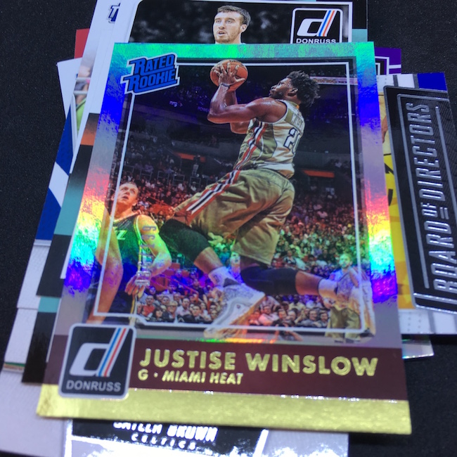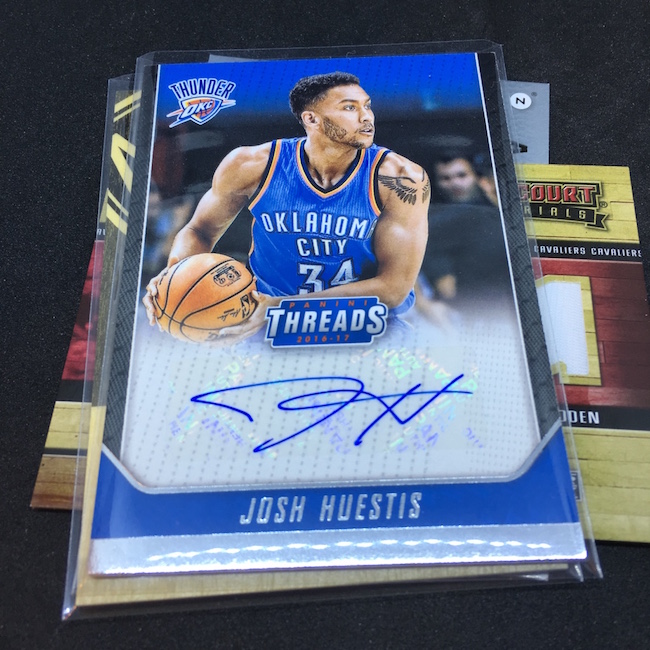 What's Buzz-worthy: You guys seem to like seeing what comes in repacks, so here's one from the hardwood. There seems to be some potential here with the packs at times -- a forum member pulled a Kobe Bryant auto from a pack in one of these, while I pulled a Josh Huestis. (Hey, it could have just been a base card.) These include a pair of hits among the packs and about the only substantial drawback here is that three of the packs were the old Collector's Choice stuff where cards are a tad stuck together. The mix here is this one was toward the retail side with the Optic packs being blaster packs but this still felt like a decent beginner mix that just didn't have as many big names as it could have. It wasn't the best results from the packs here but there are still several names you should recognize. These boxes don't seem to be as plentiful as the MLB and NBA versions that have arrived in recent months but they might be worth a consideration if the basketball options are low in the card aisle as we await new stuff. Or, perhaps there are some better packs working their way into these and they are moving. (That has happened in the past, particularly with Giannis Antetokounmpo rookie-year stuff.)