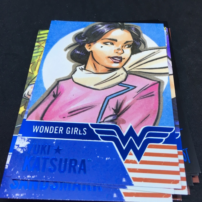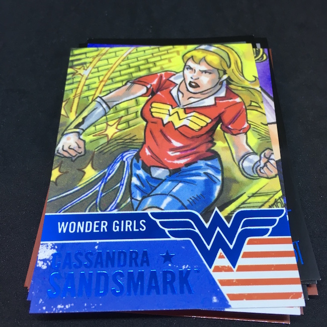 What's Buzz-worthy: The third go of this one uses artist images to revisit various DC stars and you get a few looks at characters from around the universe but not a lot of info here. The backs use the same image without color and name the artist and it's ultimately the same approach on the inserts where it's not always obvious who's on the card with a glance at the front. (Not a problem to the regular fans but it didn't help me at all, especially on the Front Line set.) The printing and collation here is solid though the insert sets won't all be completed in one box. You get a sketch in every box and there are other inserts possible not landed here. The figure is also a nice touch that adds a little extra to the package of stuff here -- a move I wish we'd see more of in all products. I think the artist-focused approach here isn't as strong as presenting info on characters but regular heavy-buying fans will know them already so that's probably why Cryptozoic went this direction. (It all comes together a little more quickly.) I really like the look and feel of the Vintage cards as they almost look like an autograph and stand out from the rest of the stuff here with their oldschool stock. Had there been one more kind of unusual inclusion in each box I think there would have felt like a little more variety and fun would have been there. Put this one alongside its previous two versions and it's a simple and fun collection with a focus but also some challenges if you want to chase certain characters or artists on sketches.