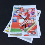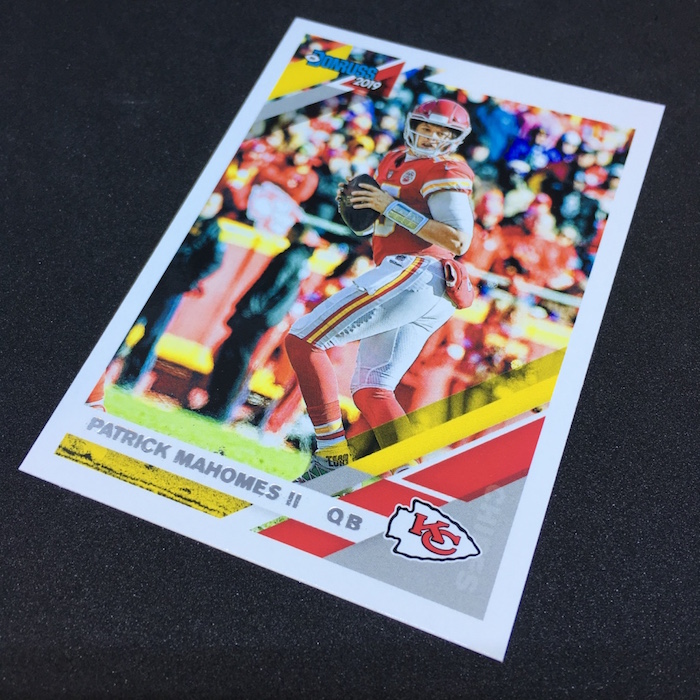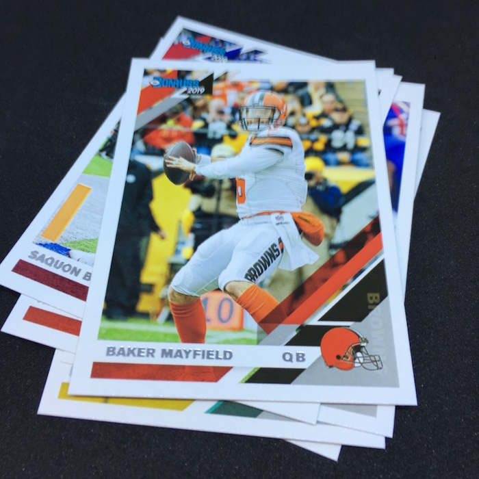 Notables on base cards – Patrick Mahomes, Tom Brady, Joe Montana, Brett Favre, Calvin Ridley, Drew Brees, Nick Chubb, Saquon Barkley, Josh Allen, Anthony Munoz, Amari Cooper, JuJu Smith-Schuster, Mark Ingram, Eli Manning, Baker Mayfield, Todd Gurley, Philip Rivers, Tim Brown, Aaron Jones, Matt Ryan