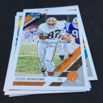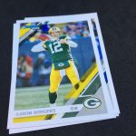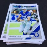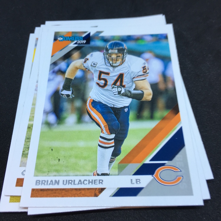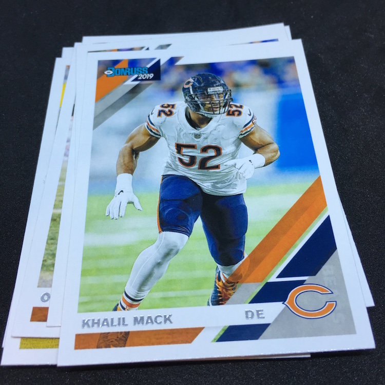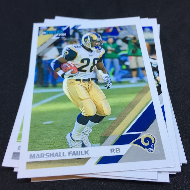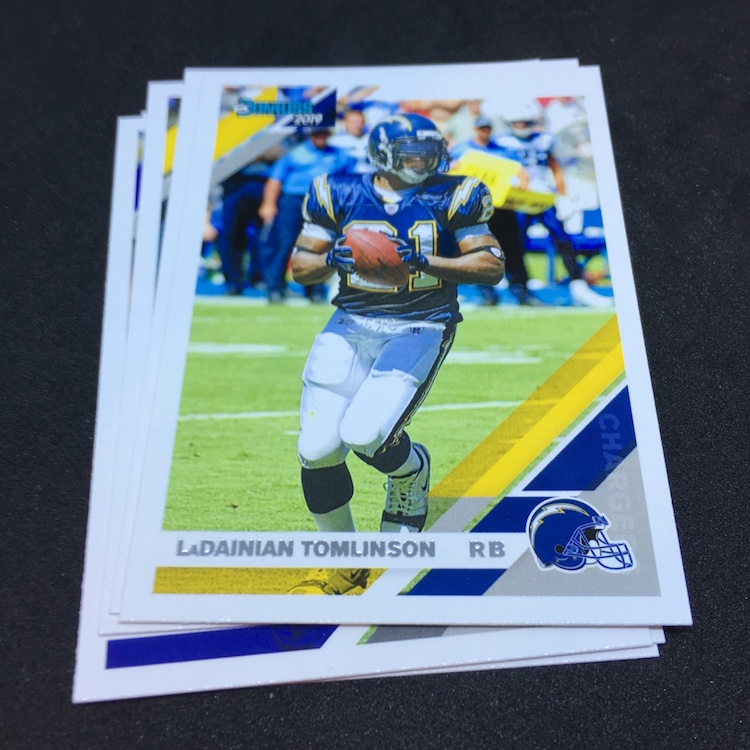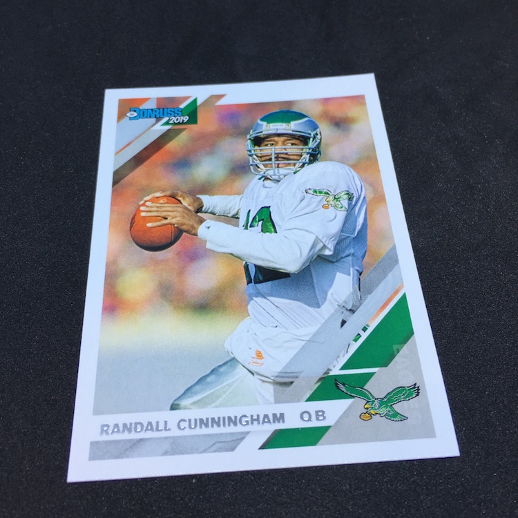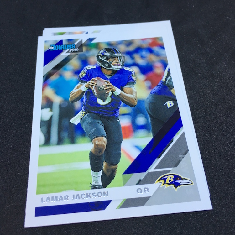 Notables on base cards – Randall Cunningham, Todd Gurley, Lamar Jackson, Aaron Rodgers, Randy Moss, John Riggins, LaDainian Tomlinson, Josh Rosen, Ozzie Newsome, Brian Urlacher, Kenyan Drake, John Elway, Mitchell Trubisky, Khalil Mack, Drew Bledsoe, Carson Wentz, Jared Goff, Ezekiel Elliott, Andrew Luck, Tim Brown, Marshall Faulk, Christian McCaffrey, Cam Newton, Derrick Henry, Eddie George