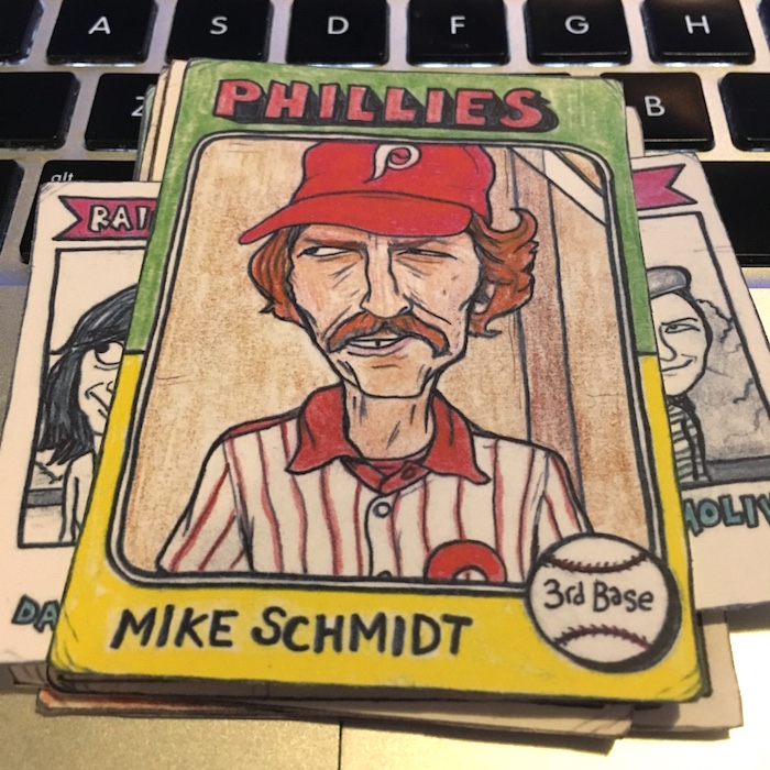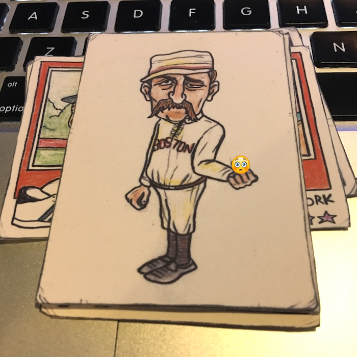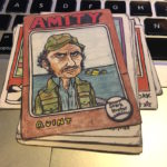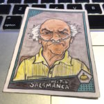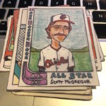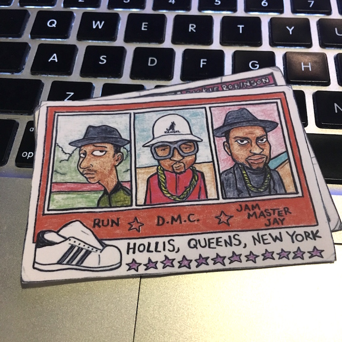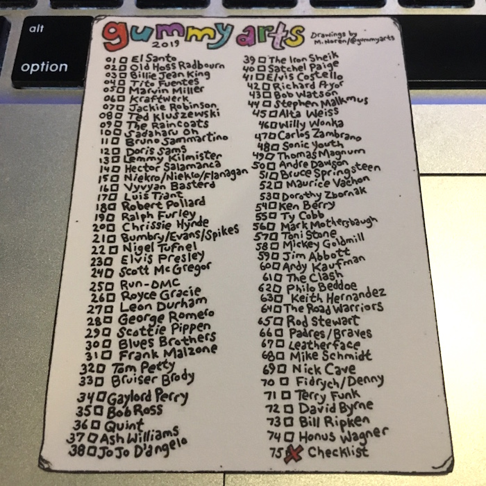 What's Buzz-worthy: Yes, this break is just for fun ... but that's exactly what it was. Gummy Arts are the near-daily drawings of 40-something Chicago-based writer, editor and artist Mike Noren who has been at it with his creations in this style for several years now. The Gummy Arts Twitter and Instagram feeds are full of timely subjects revisited as pieces that are childlike but also clearly masterful in their whimsical takes on both sports stars but icons in entertainment -- all on hand-drawn Topps card designs of the past. My first pack hit many of the bases for me with Robinson, Run-DMC, Oh and Radbourn, who's captured in one of his memorable poses from a past team photo (and is a Twitter star of his own). Others from the first and second pack prompted me to get out the Googles and learn a little bit about who's who as there are some musical acts and TV characters I wasn't that familiar with. (Confession: I didn't watch Breaking Bad.) The printing here is solid -- the cards look even more detailed in hand vs. on-screen and they are all made with their edges and corners being hand-cut to go along with their aged looks. About the only thing I didn't expect was that they are on bright-white thin stock -- for some reason I had expected thick oldschool recycled stock but that would make it harder to have clean printed detail here without it being white on the fronts. The backs all have a stamped Gummy Arts logo so you know they are legit. (Or something.) The first wave of these 2019 packs literally sold out in minutes -- there is a strong following with more than 6,500 people between the two mentioned accounts -- and packs from his release last year have sold for $20 a pop with the 2018 set going for $80 and some single cards around $10. Buzz didn't buy these for that reason, though. I simply missed out on seeing what was up these last year and I jumped on the 2019s when announced earlier this week on Twitter -- and I thought John McClane was in the set. Not this time ... maybe next time. Check out the checklist in the gallery below to see who's in this one -- there are some fun subjects. That said, anybody got a 2018 Randy Poffo or Ozzy Osbourne up for trade?