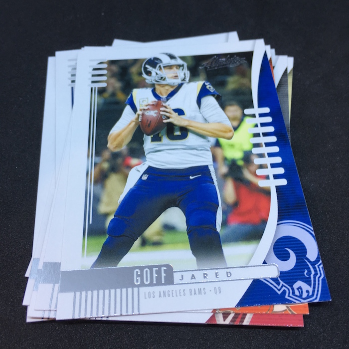 What’s Buzz-worthy: This new arrival at retail this week is one that's been revamped quite a bit and reloaded with a heavy Rookie Card presence -- they might dub this one The Home of the NFL Rookie Card it's that much. Literally half of the cards in this box were RCs and then there was a rookie auto and a parallel atop that. I landed a few big names but perhaps not the biggest ones here, so it's not a given that a 100-card rookie base presence will mean loaded boxes. It will take you a few to land them all -- and I still like the feel here. The design of this one is strong to me -- a 1990s feel with a crisp use of foil-stamping and a design that includes last year's as well as career stat totals. The rookies and inserts are on foilboard so they jump out at you quickly and the hit in this box was one of the various shades of rookie autographs. I haven't studied the checklist intensively yet but this one looks like it's a pretty strong one for retail after there were some really, really dry blasters on the retail front for this one in past years. If you didn't land a hit, you were in trouble in the past. Meanwhile, this year it's a guarantee and ink is clearly possible. Hobby boxes remain a hits-driven approach but if you like standard RCs this is a format to look at. I will have more to say when I rip more ... and I will.