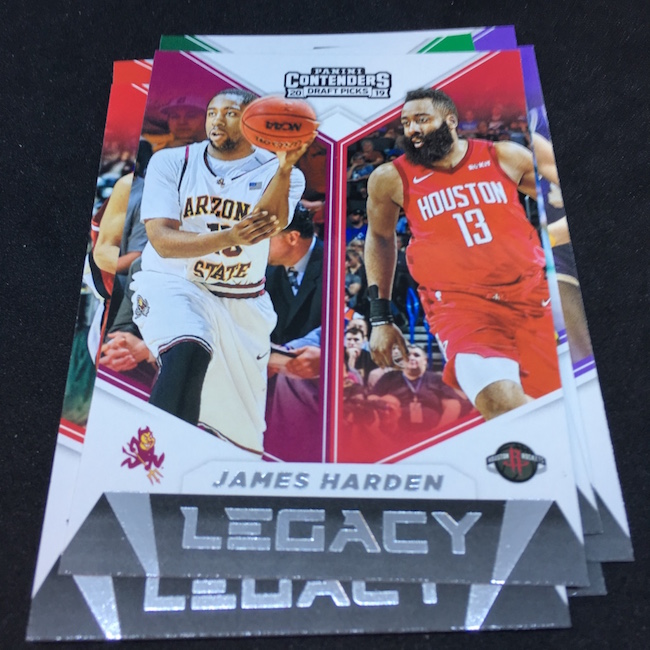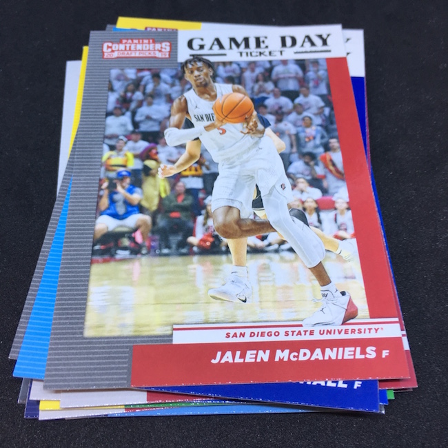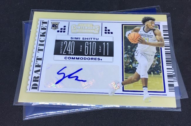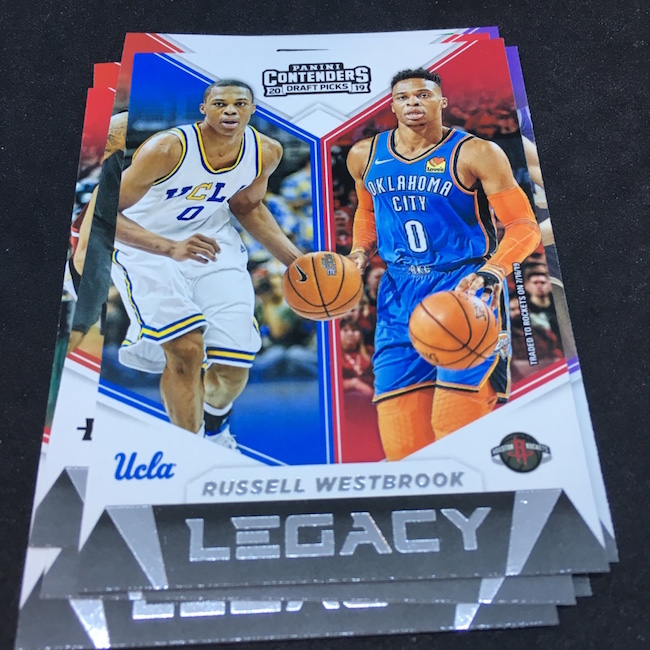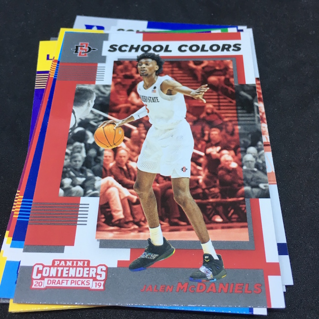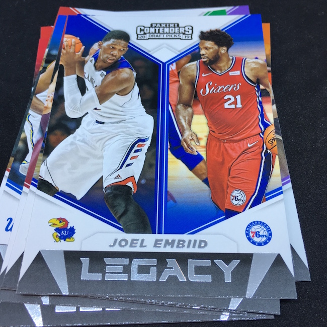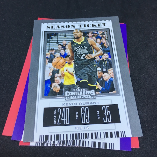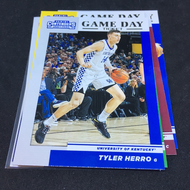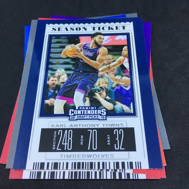 What’s Buzz-worthy: The Zion Williamson chase hits retail for the first time with the arrival of these boxes with an autograph in every one and Williamson among them. This is a simple break where I opted to do two and landed Williamson in each of them on different cards and with no duplicates in either box. The base set is comprised of 50 cards with two versions per player and I only landed one duplicate name there, Kawhi Leonard, and both sets delivered in equal numbers. How can you tell them apart? Check the black bars below the team logo on the card backs -- there will either be one bar or three (see at right). The same type of approach is used on the ink as there are plenty of variations in this one and with parallels on top of that. ... You get NBA players in their NBA unis in the base set here and the school colors are found in the inserts and ink and many types are listed on the breakdown on the side of the box. The release follows the formula of Contenders and the hobby boxes deliver an auto in every pack and six per box -- and probably easier odds at the big guy. There are a lot of possibilities in this one for ink no matter the format you try but these retail boxes will vanish fast given all of the new-collector interest in the No. 1 pick.