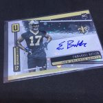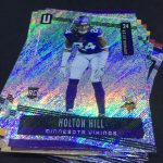 What’s Buzz-worthy: One of Panini's most-colorful NFL brands hits the retail aisle in both mega box and blasters for, I believe, the first time with this one and this $35 Walmart format guarantees an autograph in every box -- likely Rookie Signatures each time based on the breakdown panel -- as well as some cards that are only found in this format. Cosmos parallels are only found here and are likely that type on the autographs, too, while Pioneers also appear to be exclusive to this format. This particular box delivered relatively well in its standard RC volume, while the horizontal rookies also were there in a good amount though I'm not sure I landed any headline-grabbing names. (The card of 49ers rookie Jeff Wilson Jr. would have been a bigger deal in the first two weeks of the season when he had a total of four TDs with this being his only RC. Not as big now.) This brand has a ton of RCs for guys who aren't rookies on the field now which could make this release more of a sleeper product if some guys arrive and play well out of nowhere. Some of those guys also could be more popular than you might think right now without any new standout games, too. I'll admit that this is my first time ripping into this brand as the razzle-dazzle card stock approach isn't one of my go-to brands. However, it hitting retail let me dabble a little more easily and I'll admit I liked it more than I thought I might have while not getting the greatest box. One thing I think the card backs need? A basic couple of bio lines -- position, college, years played. Otherwise, these cards do have some solid card backs that give it an informative and complete feel (save for those missing things) to go with the colorful and crazy-looking fronts. If you want to test-drive this one, grab one of these boxes -- they have good potential with rookie ink -- but if you know it from past years hit hobby for plenty more.