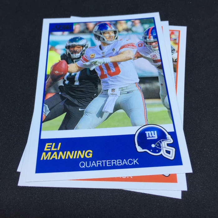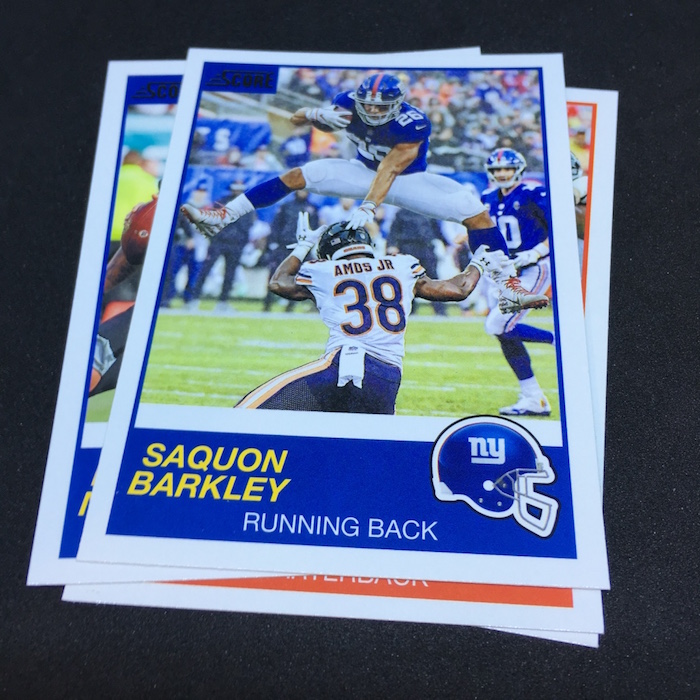 Notables on base cards: Patrick Mahomes, Saquon Barkley, Rob Gronkowski, Aaron Rodgers, Andrew Luck, Eli Manning, Taysom Hill