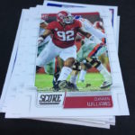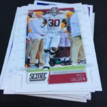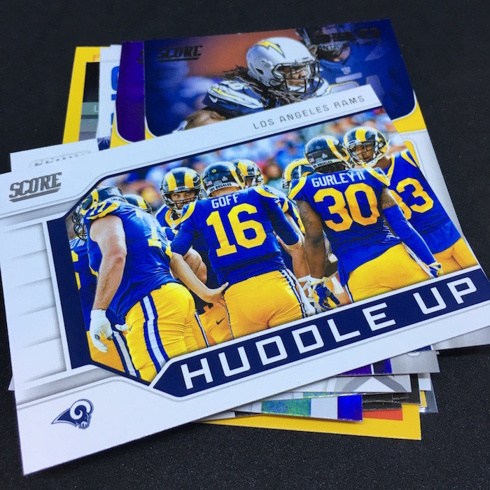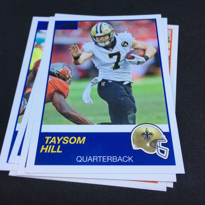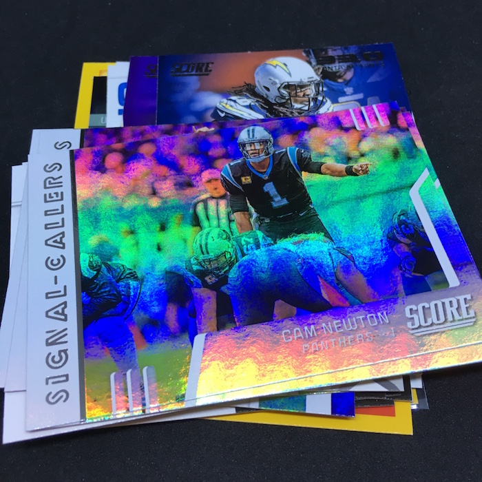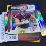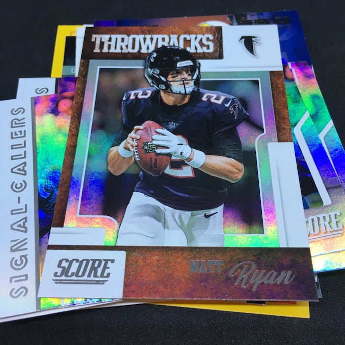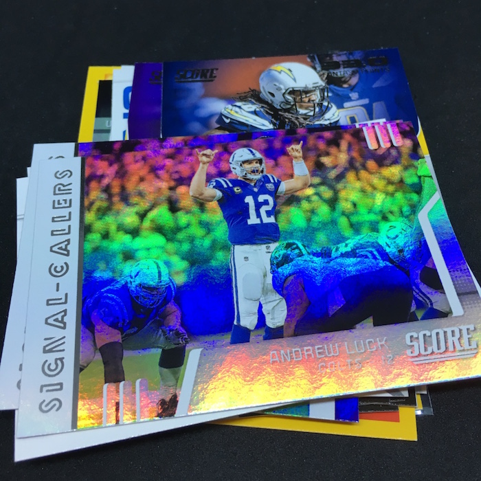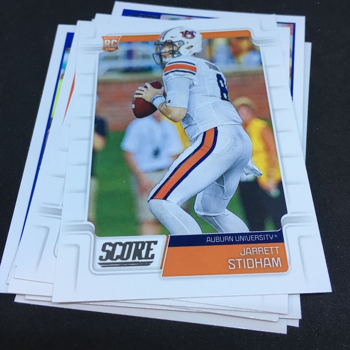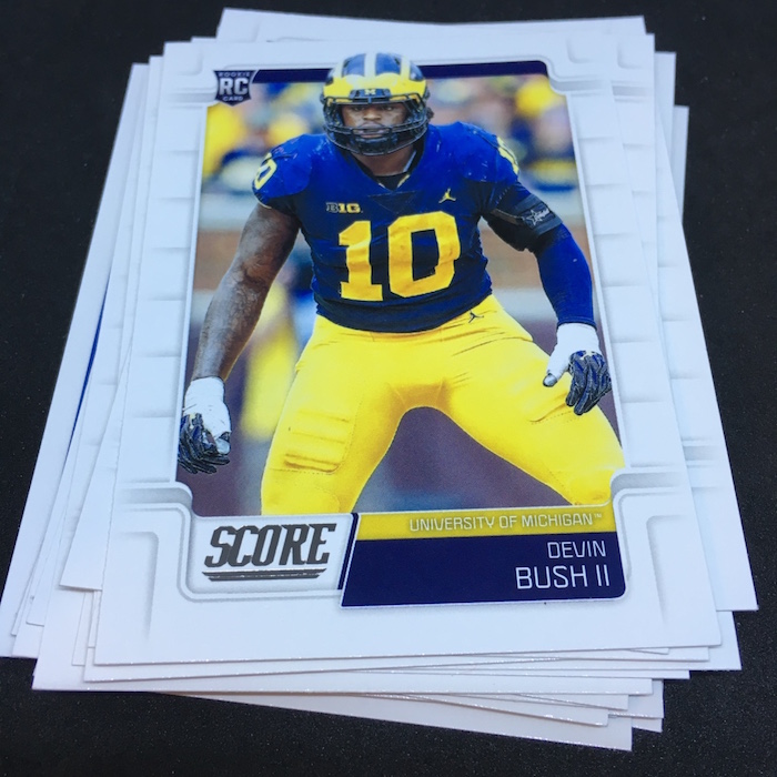 What's Buzz-worthy: I hadn't ripped into one of these since they first arrived and my first one included two hits. This time? Just the standard one -- but it was of a Hall of Famer. The inserts and variety here are the stars as the base set has a tweaked 1989 Score design that's best for its parallels and a rookies design that's nice but doesn't really match that well. You get a heavy dose of college cardboard here -- I don't mind that -- and plenty of pro stuff everywhere else. ... Hit that link above for hobby if you want ink -- four per box -- and you'll land about 150 rookies/inserts/parallels there. The hobby boxes also include stamped 1989 Score buybacks -- a nod to the landmark debut set for this brand. About the only drawback here is that the design doesn't follow that original as an exact copy. The white bar between the nameline and the photo here definitely bugs me in comparison to the original design and this is a design that I think would work better without white borders. All in all, though, you get a deep checklist with a number of good photos and the mess of inserts in either hobby or blasters. This is one worth a look for a hobby box.