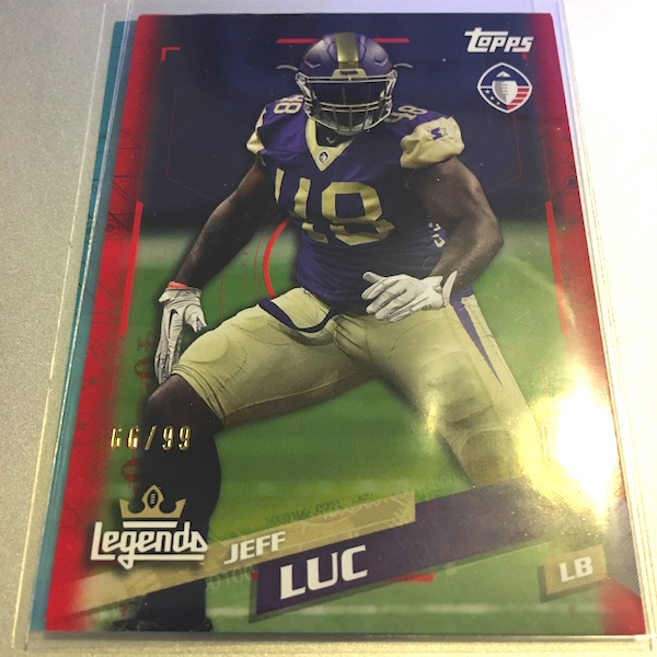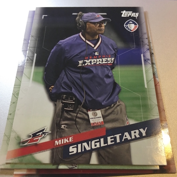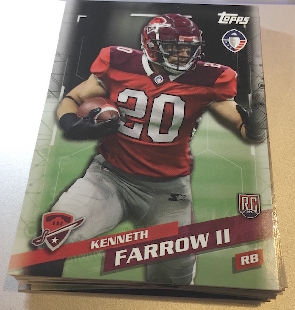 What's Buzz-worthy: Here's a first for my years in the hobby ... opening a new box after a league has folded. The Alliance of American Football is toast but the cardboard is forever -- and it was one that surprised early on. As said in my blaster break, a 175-card base set of this one sold for $49.95 -- more than once -- on eBay. (Just the base cards.) Meanwhile, hobby boxes have at times dished out four on-card autographs per box instead of the advertised three. It's not the flashiest break -- a ton of base and not a lot of everything else except autos -- but one in-demand name could pay for a food chunk of a box. I've seen a number of people ponder publicly what the appeal is here and, to me, it comes down to two things -- the local/regional fan bases who can watch their players and the college collecting crowd who gets another shot at names they may know but may have never had cardboard for before. The autograph checklist here is very, very deep and it includes a number of non-player autos that I'd expect could be in a lot more demand than you might think. With so many autos this could be a sleeper release in the future simply because you never know where these athletes might end up and college football collectors can be a dedicated bunch for guys you don't see on cardboard elsewhere. Could there be some added interest over time since the league fell apart so quickly? Maybe.