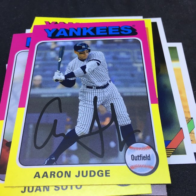 Notables on base cards – Ty Cobb, Shohei Ohtani, Richie Ashburn, Hideki Matsui, Andrew Benintendi, Al Kaline, Deion Sanders, Willie Stargell, Christy Mathewson, George Kell, Jeff Bagwell, Nolan Arenado, Tony Gwynn, Ichiro Suzuki, Aaron Judge, Juan Soto, Catfish Hunter, Ivan Rodriguez, Bob Feller, Josh Donaldson, Thurman Munson, Todd Helton, Ronald Acuña Jr., Hank Aaron, Alex Rodríguez, Bob Gibson, Anthony Rizzo, Orlando Cepeda, Reggie Jackson, Don Larsen, Gary Carter, Goose Gossage, Eddie Murray, Mike Trout, Albert Pujols, Rod Carew, Carlton Fisk, Jim Thome, Roberto Alomar, Bob Lemon, Pee Wee Reese, Jackie Robinson, Clayton Kershaw, Johnny Bench, Warren Spahn, Tris Speaker, Don Mattingly, Rickey Henderson, Manny Machado, Corey Seager, George Brett, Tim Raines, John Smoltz, Eddie Mathews, Roger Clemens, Harmon Killebrew, Roberto Clemente, David Ortiz, Joe Morgan, Rogers Hornsby, Gary Sanchez, Willie McCovey, Joey Votto, Babe Ruth, Ralph Kiner, Dizzy Dean, Miguel Cabrera, Sammy Sosa