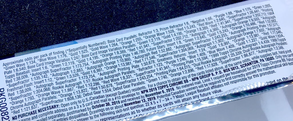 The box: 2019 Topps Chrome baseball cards (hobby box)