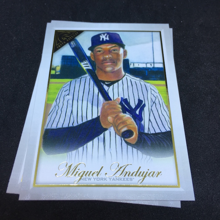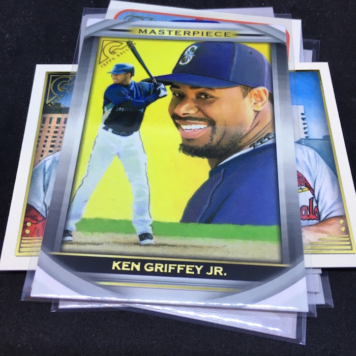 What's Buzz-worthy: At a glance, this probably looks like a kind of basic box -- and it is in this format -- but this blaster delivered very well for such a small batch of packs. The Green parallel here? One in 217 packs. The Griffey SP? A good find as the SPs are just one per blaster. Throw in a Riley among the parallels only found here and a second Griffey as well as an appearance by Vladdy and it's a decent box. Value-wise, I'm not sure -- but I'm not buying to sell here unless I land something rare on a key rookie. ... As said last time, this Walmart-exclusive premium brand has plenty of star power from the past and present and there's a pretty good chunk of inserts, too. ... I wasn't big on last year's artwork based on teasers but was pleasantly surprised once I ripped into a box. This one? It's got good design and gloss/foil touches -- the frames -- but not as many of the art pieces jumped out at me from these players. My favorites? The Hall of Fame Gallery paintings and the Heritage inserts, which use the 1965 Topps design -- a favorite of mine from the past.