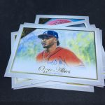 What's Buzz-worthy: With Opening Day finally upon us, I figured I'd rip into a box you might be able to find out there in the retail wild no matter how barren your section might look -- this is a release that seems to be lingering longer than all others out there and yet it's a brand that can deliver some decent stuff with some luck. The framework of the design here is strong with limited uses of foil and spot gloss and a decent array of inserts even in a smaller blaster box. Autographs also can be found, too, but your best bet is to hit that link above where you can find two autos in every collector box and even have a shot at original artwork in those larger boxes. (Those vanished quickly at retail.) The only drawback of this release that may help it linger? The artwork might not be the taste for many collectors but there are still some clean pieces to be found here. As said before, the more I dabble with this one, the more I like it and SPs here are one per blaster and the volume of RCs you get here is strong -- both key for this format. You also get a pack of Artist Proof cards only found here in blasters (this one had some good names there). This Walmart-exclusive premium brand has plenty of star power from the past and present and there's a pretty good chunk of inserts, too. My favorites here? The Hall of Fame Gallery paintings and the Heritage inserts, which use the 1965 Topps design -- a favorite of mine from the past. If you like some of what you see here, hit that link for the larger boxes that guarantee a lot more.