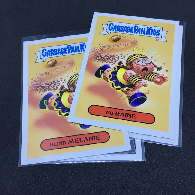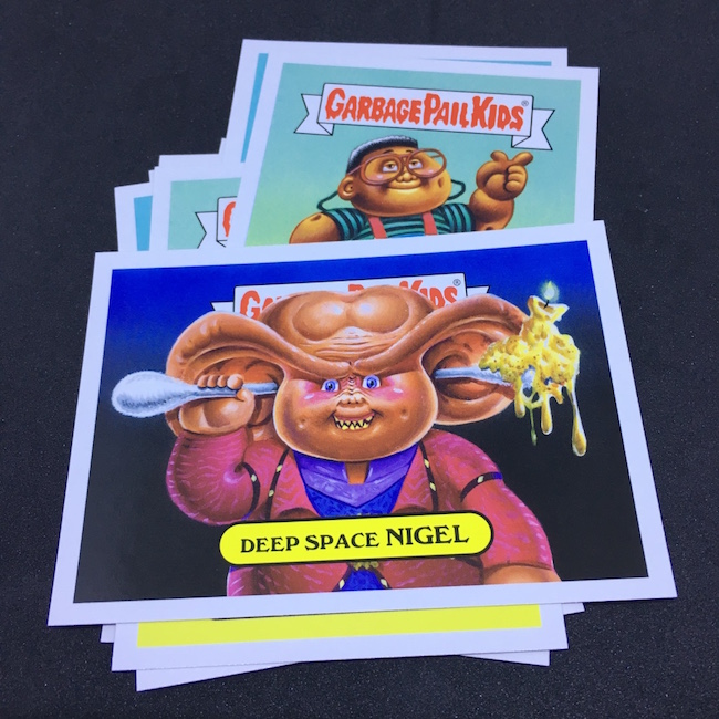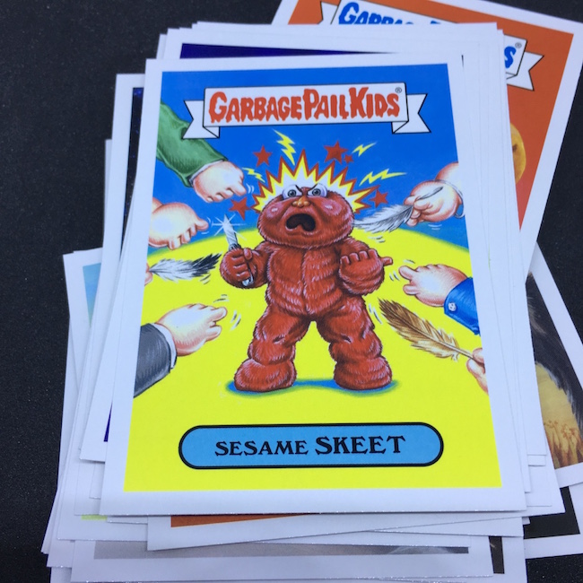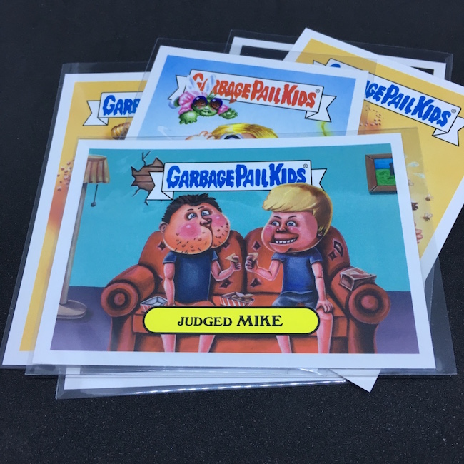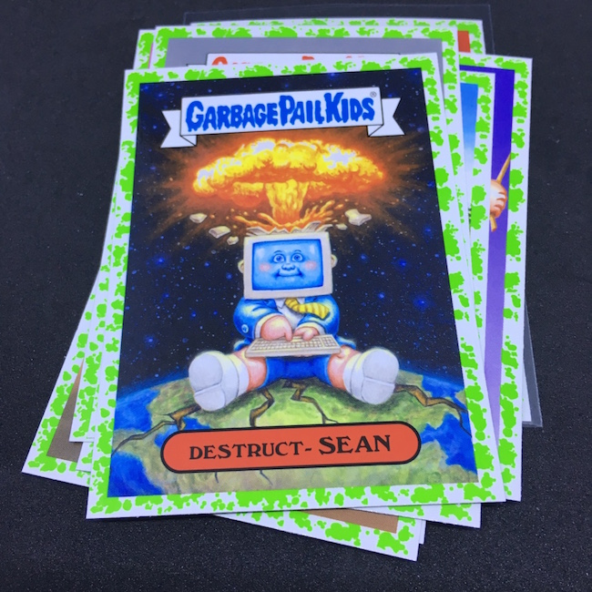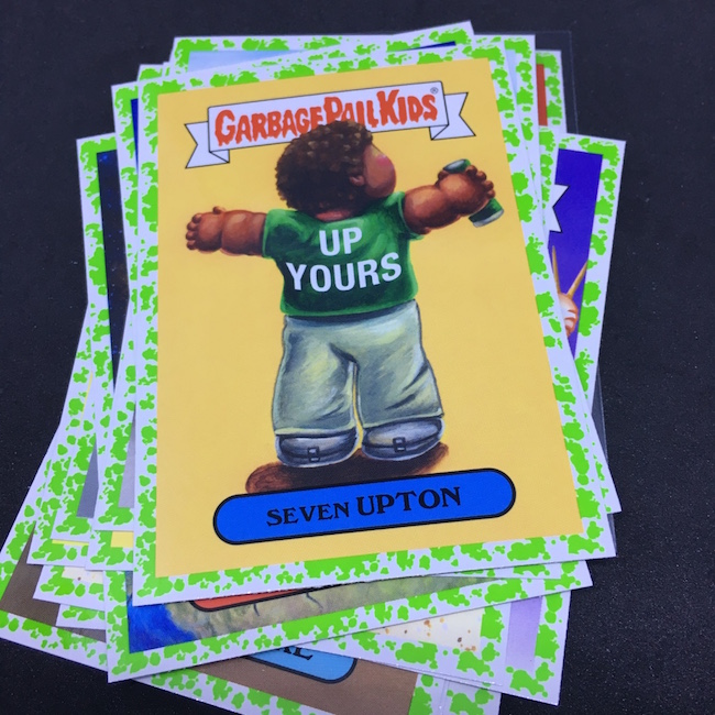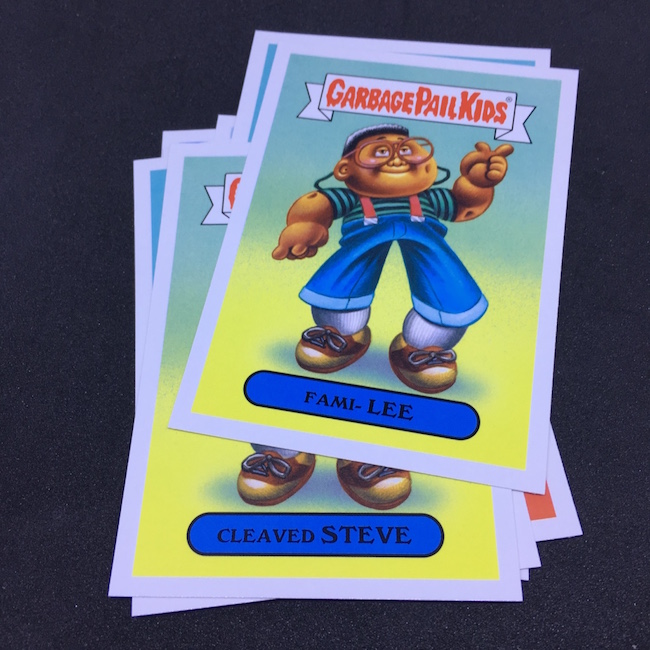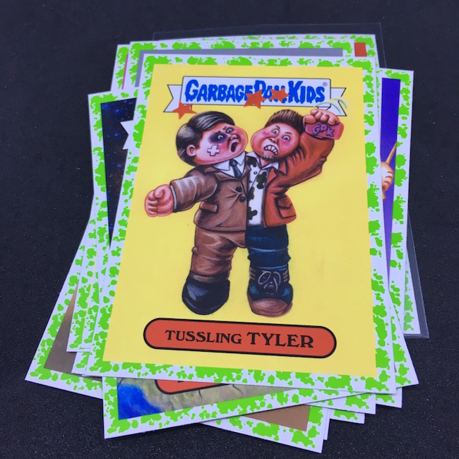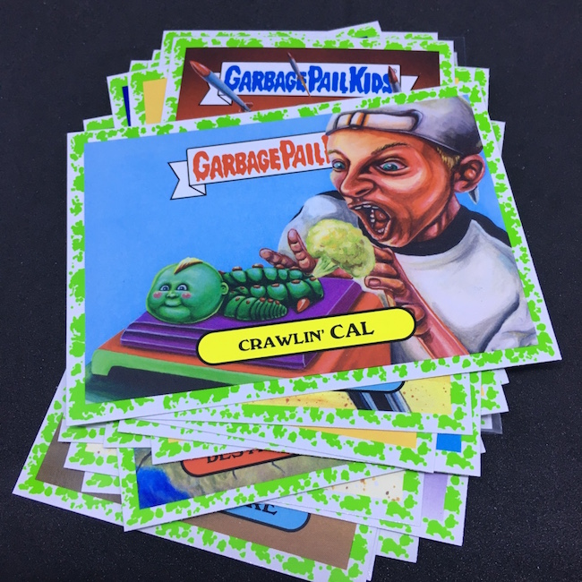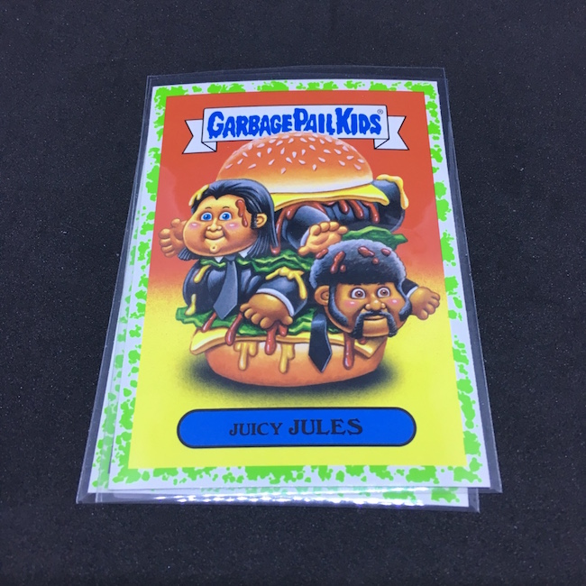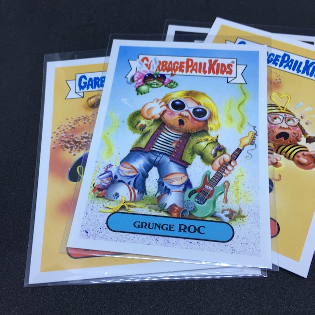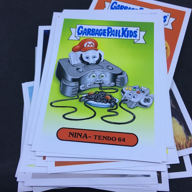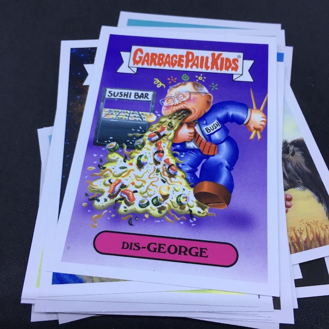 What's Buzz-worthy: This is easily among my favorite GPK releases -- so much so I've opened more than one box despite landing much what I would have wanted to without doing so. ... I just wanted more. It's loaded with nods to stuff you should remember from not that long ago -- check out the huge gallery below. ... As said before, cartoons, comics, fads, fashion, films, musicians, celebs, news-makers, politicians, toys, video games and TV shows from the 1990s get the GPK takedown here and it's a collection of subjects that seem masterfully spoofed. The formula here is similar to past years -- one numbered parallel in the typical box of this one with longer odds on autographs and sketch cards. The collector's boxes deliver more inserts and some type of guaranteed hit but this one is a solid basic set to me. So many cool subjects here -- everything from The Big Lebowski to Image Comics and Dennis Rodman get GPK'd and it works well. The main box image isn't celeb-based (it's for the fashion of ripped jeans not a grunge music icon), but don't let that one dictate what you think -- check out that gallery. This one gets an A+ from me.