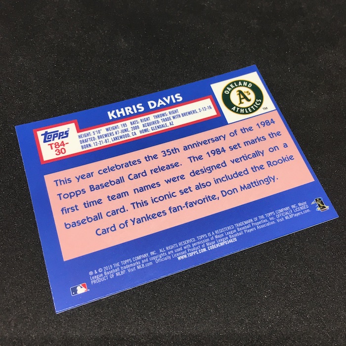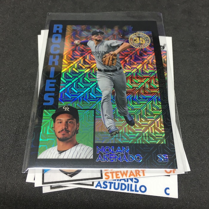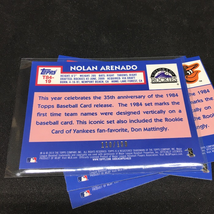 What's Buzz-worthy: What is this? It's a box-topper bonus pack from 2019 Topps Series 2 -- one per hobby box, two per jumbo box -- and it's a Chromed take on 1984 Topps but with stars and rookies of today. It's just a 50-card set but it's also one that has parallels and, most importantly, autographs possible. Generally, I've done very well with topper packs over the years -- I have found good names on color and even Hall of Famer and rookie ink -- but this one was rough from the start before a respectable finish. That's basically 100-0 top-bottom centering on the three cards making them of little interest to only those most in need to finish a set or stockpile while the parallel at least saved this one. My player crop was rough, too, but the checklist includes some good names. Among them? Ken Griffey Jr., Nolan Ryan, Albert Pujols, Chipper Jones, Wade Boggs, Ernie Banks, Frank Thomas, George Brett, Robin Yount, Roberto Clemente, Tony Gwynn, Bryce Harper, Max Scherzer and Mariano Rivera. (The RC crop isn't strong ... better in sets after this one.) Among the autos? Anthony Rizzo, Adrian Beltre, Jones, Thomas, Joey Votto, Jacob deGrom, Griffey, Manny Machado, Ryan, Rivera, Yount, Boggs and more ... and everybody has parallels.