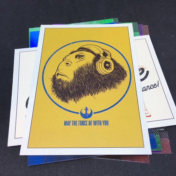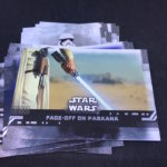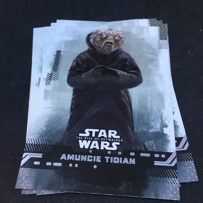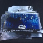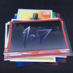 What's Buzz-worthy: Buzz found this one on the shelf at a Walmart a day early, so here we go. ... There are no spoilers in this release as this one is light on the details with every card back essentially being a blank slate much more like vintage stickers. The title line on the front appears on the back along with the movie's logo and that's it on the base cards. The inserts basically tell you the name of the set and how many cards there are and nothing more. Despite the bare-bones approach here, I like the look of these cards with a clean textured design on the characters and a simple but not overbearing look on the scenes (mostly from trailers). The parallels are bold, too, and there's a good variety of stuff to be found here with a Red bonus pack only found here. The parallel in that pack is one that's found one in 67 boxes so there will be a bit of a challenge for anyone trying to chase the Red master set here. They range from one in 34 boxes to one in 106 boxes -- none of them guaranteed if you were to buy two blaster cases. These sub-$10 boxes are small -- that's why I call them mini blasters -- and I think other chains will again get boxes with more packs but no bonus cards and instead a manufactured Relic. (That was the case last time.) The hobby boxes officially drop tomorrow and they will guarantee a lot more, including an autograph every time. I like the look and the feel of this simple release, though the inserts all felt a little too similar this time around. I'll say more if I rip into some hobby boxes of this one after seeing the film sometime soon. One other plus here? There are plenty of potential other finds for inserts, parallels, sketch cards, printing plates and even autographs and Relics in these boxes. Ink starts at one in 551 and other hits are higher ... but all in play here. Imagine finding a triple-auto or a Prop Relic in one of these ... it can happen.
