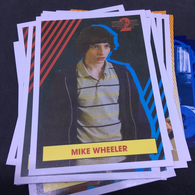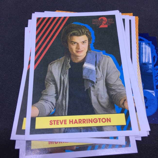 Character stickers (20) – Nancy Wheeler, Max Mayfield, Jim Hopper, Martin Brenner, Lucas Sinclair, Scott Clarke, Joyce Byers, Eleven, Murray Bauman, Terry Ives, Steve Harrington, Will Byers, Kali, Mike Wheeler, Jonathan Byers, Erica Sinclair, Billy Hargrove, Dustin Henderson, Sam Owens, Bob Newby
