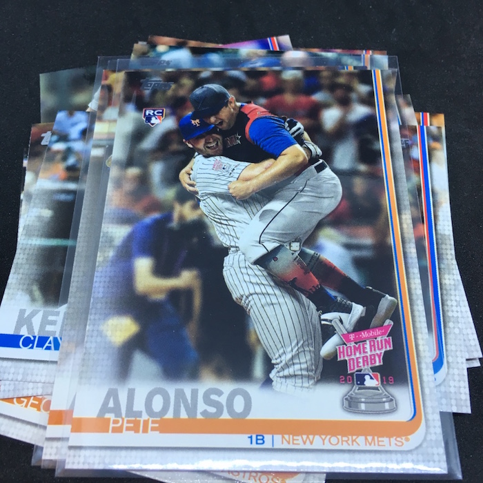 What's Buzz-worthy: This box, as well as my second one to come later, included a pair of numbered cards that seems to be more than the norm for a blaster and it was in the case of that Bellinger card that's one in 311 packs. That gets it a solid grade as well as the rookies -- they are a given with this brand -- but it ultimately was all a rip that fueled one thought in my head ... I should have grabbed a jumbo hobby box. Series 2 delivered a ton of stuff in jumbo boxes and all of the names and newcomers I found here (as well as those numbered cards) would be found in much higher volume in a jumbo box along with some guaranteed ink and more. I definitely still don't like the backwards-name design here -- that will bug me for years to come -- but the mix of veterans on All-Star cards, Home Run Derby cards, Rookie Cards and a mess of inserts all help make this a comfortable break that should keep people happy on a few fronts when you consider all of those good-player finds have parallels, too. I had one pack here that included two different Pete Alonso cards, for example, with a third following up in the next pack. That will only be amplified with larger packs in a larger box ... with a number of good players to be found. I landed fewer inserts this time vs. Series 2 and I didn't land any photo variations -- cards that aren't that tough even here -- but I still liked a lot of what I found here. I just wanted more.