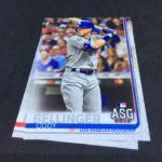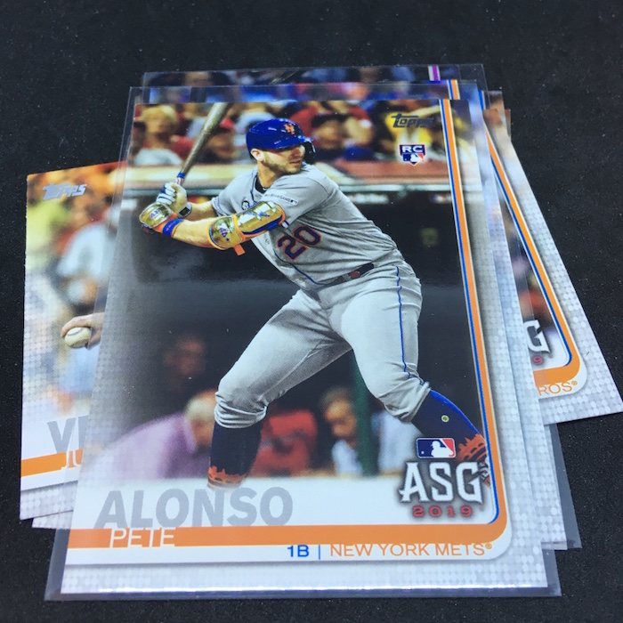 What's Buzz-worthy: With all those Alonsos and Junior appearances from the past and present, this blaster delivered pretty well -- and it's not out of the ordinary considering how loaded up this one is with Rookie Cards. ... As said last time, I definitely still don't like the backwards-name design here -- that will bug me for years to come -- but the mix of veterans on All-Star cards, Home Run Derby cards, Rookie Cards and a mess of inserts all help make this a comfortable break that should keep people happy on a few fronts when you consider all of those good-player finds have parallels, too. I once again had one pack here that included two different Pete Alonso cards, for example, with a third following up in the next pack. That will only be amplified with larger packs in a larger box -- with a number of good players to be found -- so I'd hit up jumbo boxes here for sure as they guarantee ink and other hits while also delivering volume on everything.