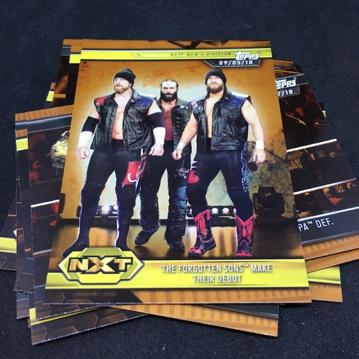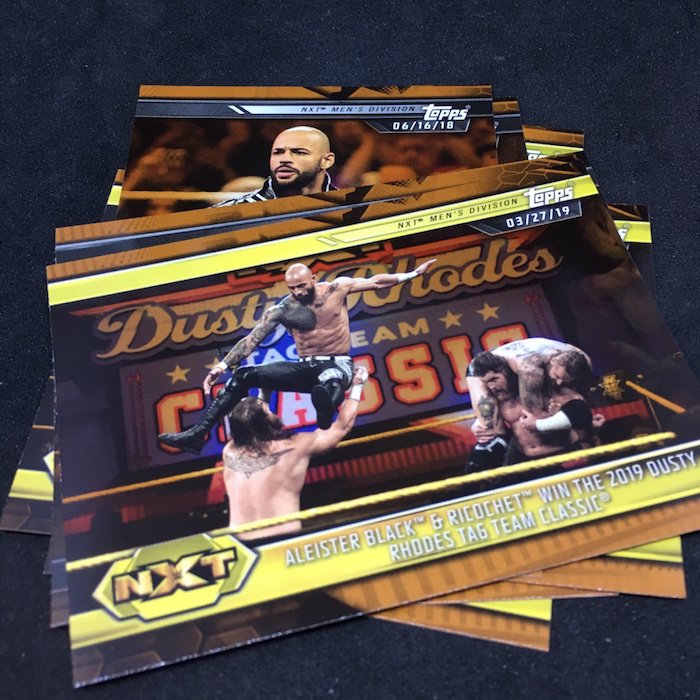 Notables on base cards: The Undisputed Era, Aleister Black, Johnny Gargano, Pete Dunne, Adam Cole, Ricochet, Viking Raiders, Lars Sullivan, Tommaso Ciampa, Moustache Mountain, Keith Lee, Velveteen Dream, Matt Riddle, Heavy Machinery, Walter, Kayla Braxton, Kushida, The Street Profits