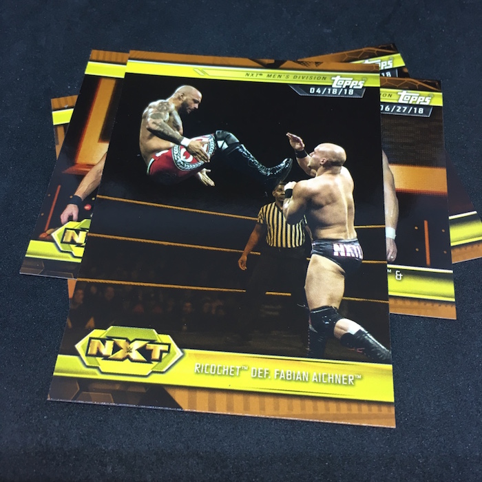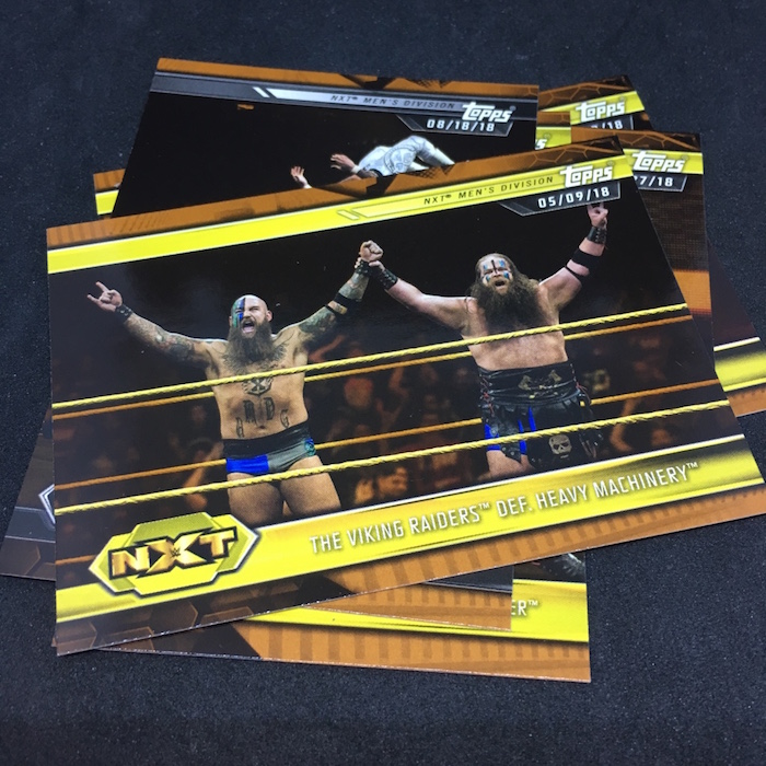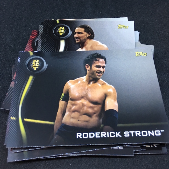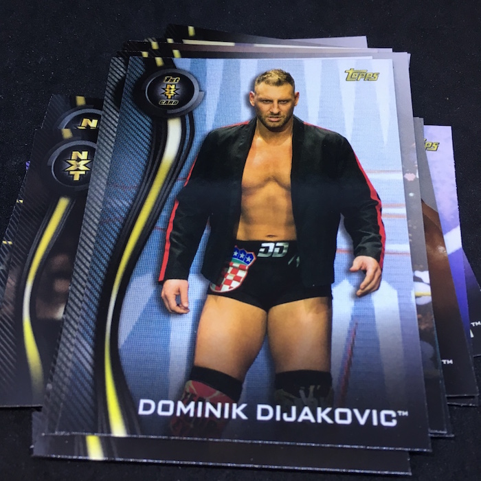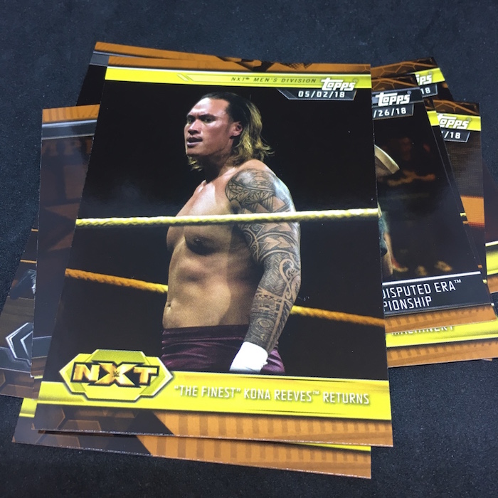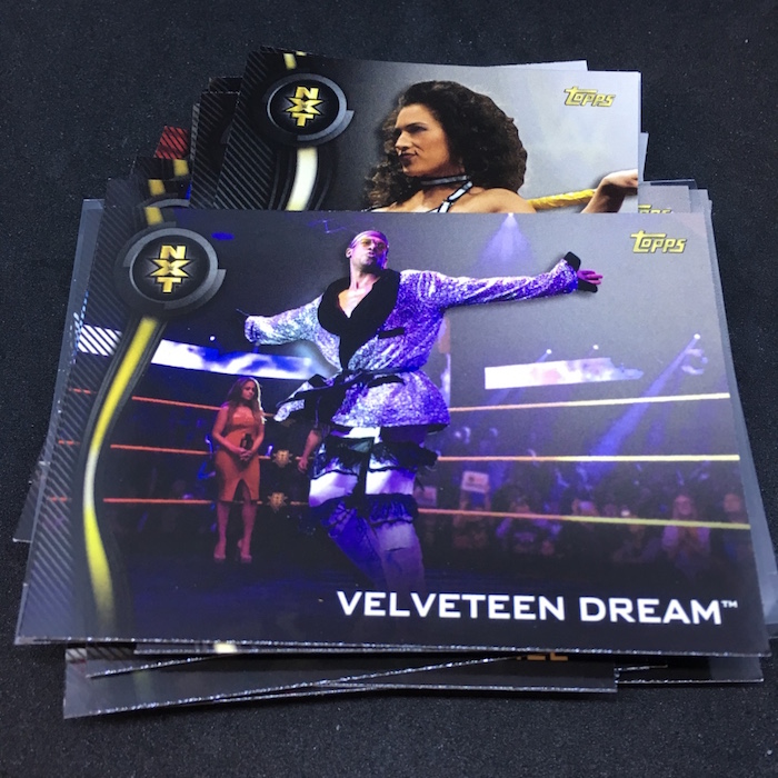 Notables on base cards: Aleister Black, Johnny Gargano, Pete Dunne, Adam Cole, Ricochet, Viking Raiders, Tommaso Ciampa, Moustache Mountain, Keith Lee, Velveteen Dream, Matt Riddle, Heavy Machinery, Walter, Kayla Braxton, Kushida, The Street Profits, The Undisputed Era ... and everybody else