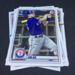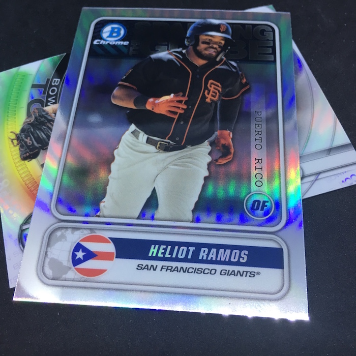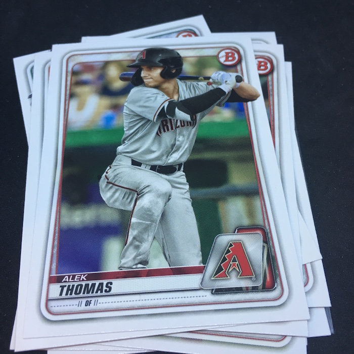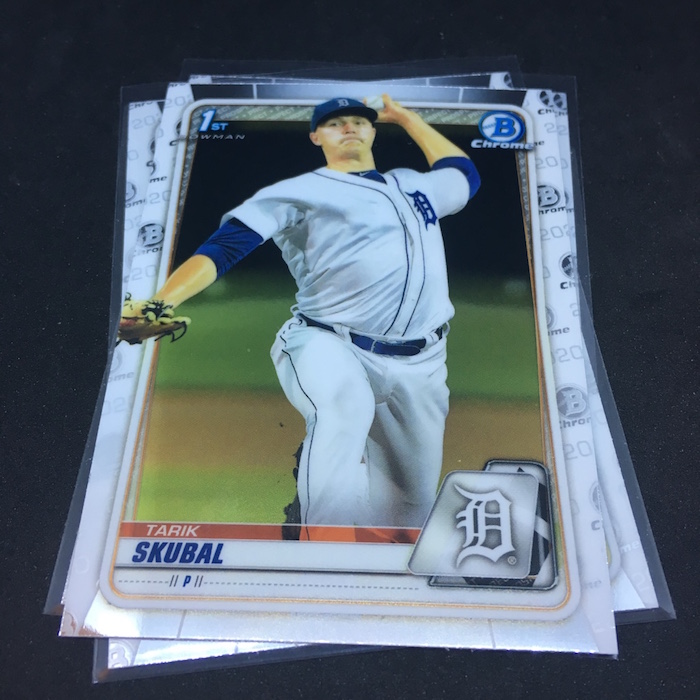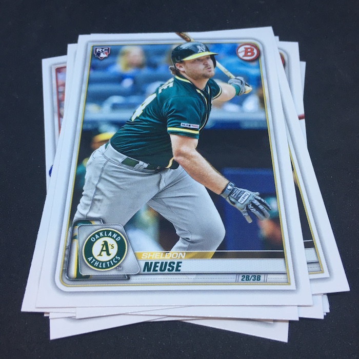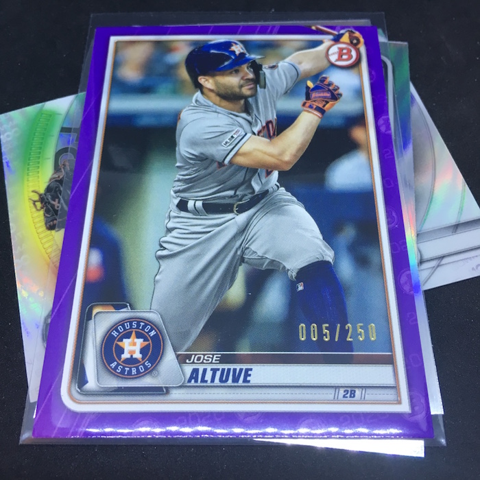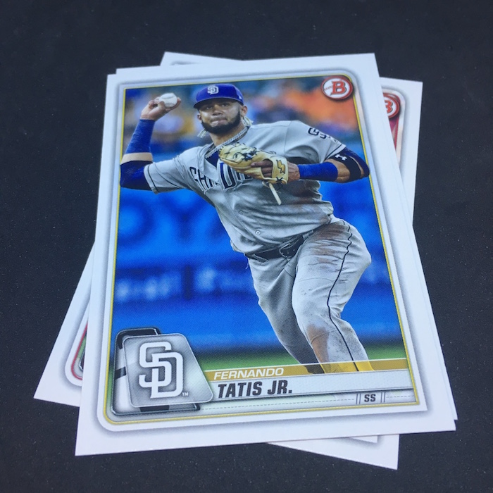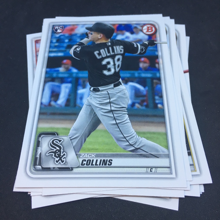 What's Buzz-worthy: This is a top-level box for a few reasons -- three of the top prospects were found here and two of those were on Chrome cards -- but the two numbered parallels really shouldn't be here, let alone in the same box. (So if these run streaky there could be some nuclear boxes out there with the right names lining up.) The Purple is one in 230 packs (39 boxes). The Blue Prospect is one in 256 (43 boxes). The boxes are small once again this year -- six packs with 12 cards -- but the feel is ultimately the same. You get two Chromes per pack and then some inserts that are Chromes fall atop those. There are just three Prospect paper cards per pack but one of my packs only had two. (I wasn't paying attention to what happened on that one.) These white-bordered cards are crisp and clean -- with borders that a number of collectors clamored for after last year -- but they might be too simple. At least the design isn't one that's perfectly symmetrical and that's something, to me, that made some past sets a bit dull. Dominguez, Puason and Witt are three of the notable newcomers to look for here -- and with the release being staggered and slow-rolled for hobby boxes that will begin arriving tomorrow because of COVID-19 shutdown delays, there could be plenty of anticipation for everything in here.