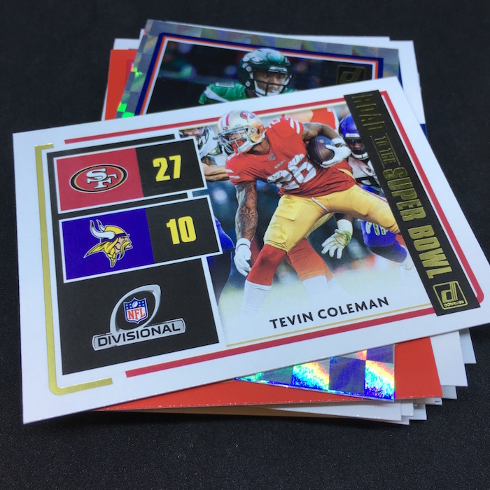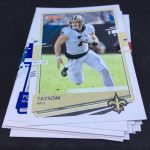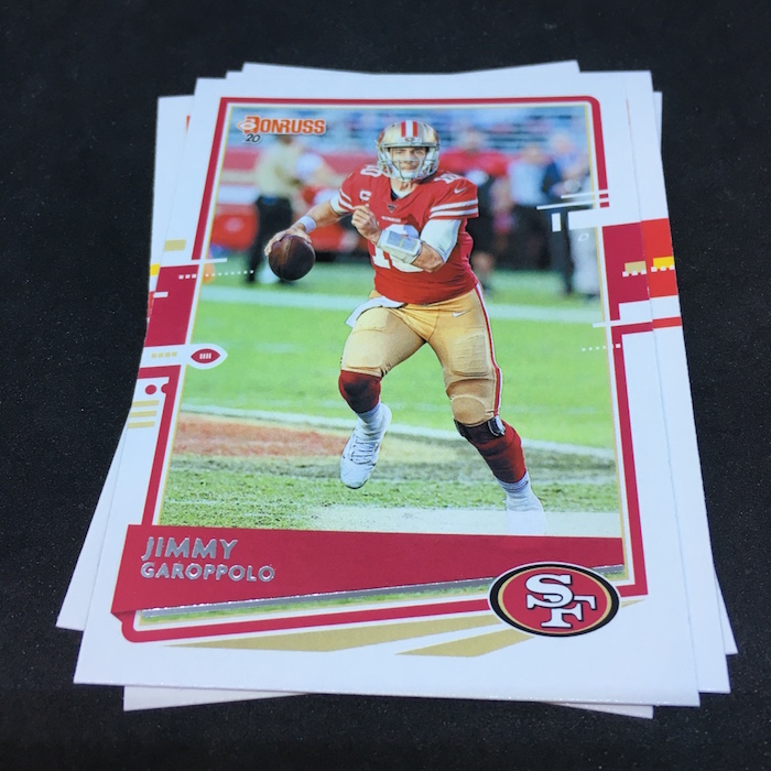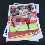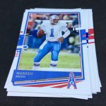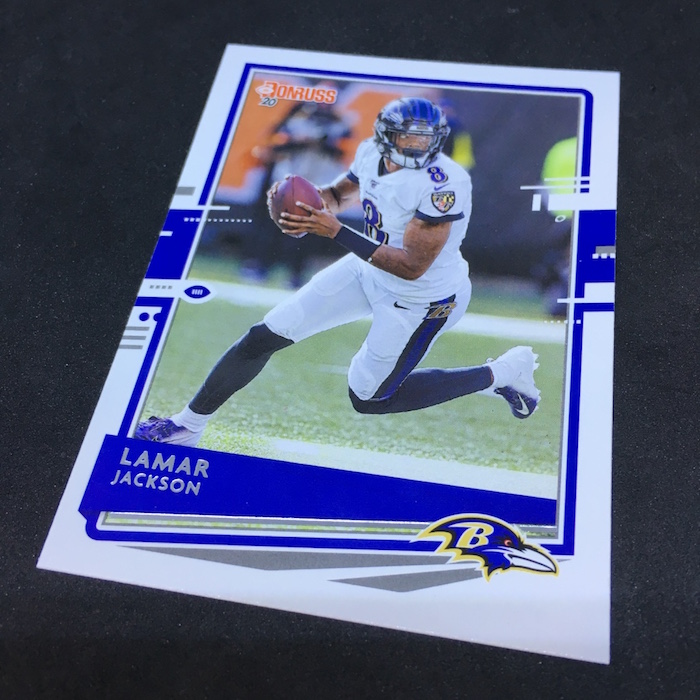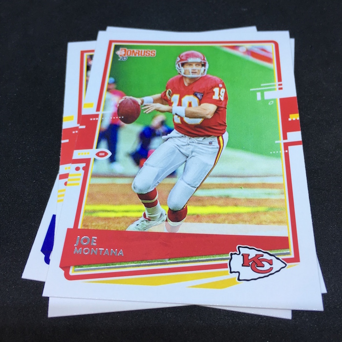 Notables on base cards – Lamar Jackson, Patrick Mahomes, Joe Montana, Jimmy Garoppolo, George Kittle, Julio Jones, Derrick Henry, Mark Ingram, Warren Moon, Dak Prescott, Derek Carr, Cooper Kupp, Carson Wentz, Peyton Manning, Taysom Hill, T.J. Watt