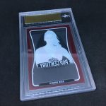 What’s Buzz-worthy: Popping the lid on this one was an odd experience as the top two cards were clears, meaning I could see all the way down to the bottom card to see a hint of some crystals ... nothing big but definitely a different ripping visual. What are these? Every card here is an encased 1/1 blank-backed autograph-free proof of the inked cards that arrived for this long-running non-sports franchise earlier this year. The first card I saw here is for Nina Dobrev of Degrassi: The Next Generation and The Vampire Diaries but I'll admit I wasn't all that familiar with her other than her name. My second card is of veteran actor Anthony Rapp with his role in Rent as "Mark Cohen" getting the spotlight on this card. You might also know him from Adventures in Babysitting, Dazed and Confused or Star Trek: Discovery. My final card is the A-lister of the box -- at least in that she's got her first autographs in years in 2020 Pop Century -- in 1990s icon Alicia Silverstone. Oddly, it looks like a small sliver of blue tape got into the slab or was stuck on the card before it was sealed. (I say that since it's not budging with some intense slaps to the case. It's just under the "RY" in the logo but actually blends into the photo here a little.) Not a huge deal but definitely a distraction that shouldn't be in there. ... These proof boxes can be hit and miss if you're breaking to sell and the prices seem oddly soft -- there are several 1/1s per subject -- but they are still rare cards and that makes the overall run of these boxes small, too. I like the range and variety of who you can find here and they are relatively affordable despite their scarcity. Last year, this one went a little further by guaranteeing an autographed slab in every box and those dried up fast but can still be found for a price that's higher than these. I didn't do any 2019s but I probably should have as I like a simple break where you know what you're getting. The only mystery is who.