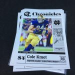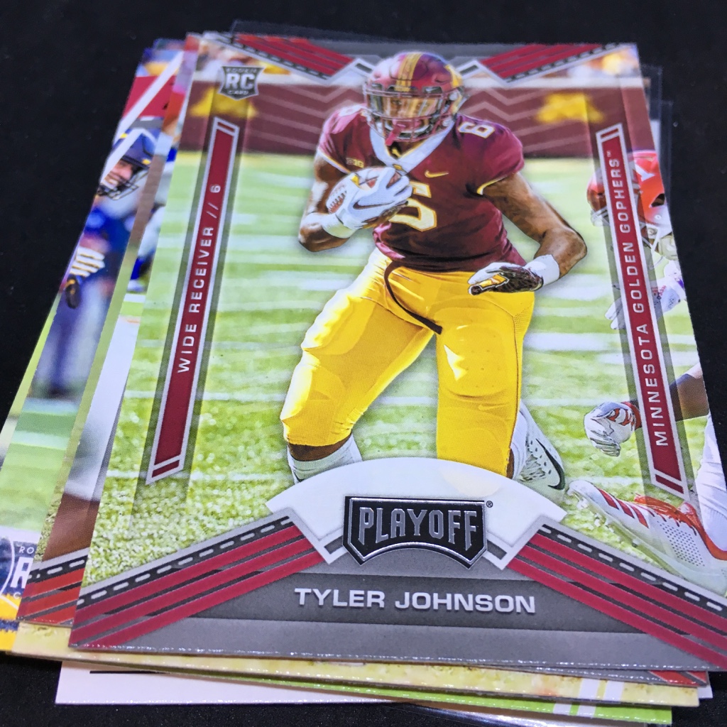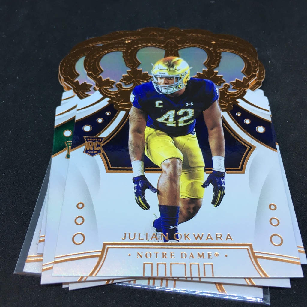 What's Buzz-worthy: This brand gets a top grade from me because it's one that takes the bigness of college football but breaks it down into several smaller sets with stronger checklists and offers up a wide variety of looks at those elite players in their school colors. Why does this work for me? More shots at the few names I want -- and they can arrive pretty well here. (Almost to the point where I'd want to do a team break of this release in bulk or maybe just a player draft -- two things just not easily do-able with most football releases but seem perhaps more possible here.) Value-wise? We'll see ... stuff that's easily found tends to be cheaper in terms of secondary market values unless a guy is red-hot ... and even over time their NFL stuff will get attention first unless you're a college collector. (I'm more that guy.) You get 14 releases in one box here with the retail version of this release only found at Target stores (a bummer). Translation to all of this? Stay away bulk-flippers and bot buyers ... you won't win here. (At least that's my hope ... leave some for the kids, err me.) Parallels here include Red, Green and Blue while there also appear to be other potential finds here and plenty more in hobby boxes that drop this week (Friday). Go crazy there, bulk buyers -- you get a lot more ink and other stuff in hobby boxes. The breakdown here is pretty even, though the Crown Royale cards are most-plentiful. (Why? I'm not sure ... maybe this one was made to not be an exclusive and they were made earlier than everything else?) I really need to examine the checklist closer for this one -- it seems like it's a jam-packed project but in a good way ... and I'm not even talking about hits here. I'd be inclined to potentially chase entire player runs out of this one -- and I feel like I have a ton for my guys here out of just two boxes. (Wish I had grabbed more.) If I see it, I will.