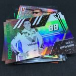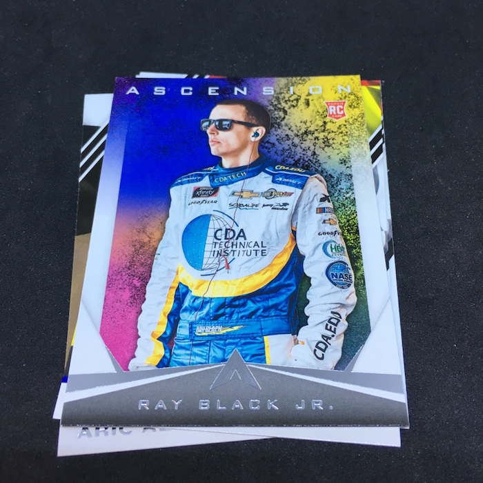 What's Buzz-worthy: The mix is fun here but this box just felt a little flat considering all of the potential -- at least for me, more of a casual NASCAR watcher needing big names rather than being a week-in, week-out diehard follower. The Prime-branded hit is a good thing here -- if the swatch was something premium. This feels a lot like most hits, just with a slightly larger window. The Hailie Deegan appearance helps, especially on an Optichrome-stock card, and then a numbered parallel helped out some ... just didn't feel like an A-blaster this time to me. (I do think this is a brand to buy in bulk and hope for some big-name streaks to happen within them.) ... As said last time, the Chronicles brand takes to the track for the first time with some key newcomers in the mix here that help things out some -- but not as RC-meaty as things are elsewhere -- and with a hit guaranteed in every box ... something not seen elsewhere. However, these boxes are small and there might be some names you might not want to see line up in bulk. ... I liked the minimalist Chronicles base set presence here and I like that these are not forced into all cards being part of a main set. There are a lot of possible finds here (all the info is on an unreadable bottom panel of the box) and I got a solid mix. If the hits here can cough up premium-color patch cards and autos that carry a premium feel (other brands have in the past), then these are a no-brainer. Hobby boxes should be a first option if you're sold ... if you just want to dabble with NASCAR these smaller boxes can be fun.