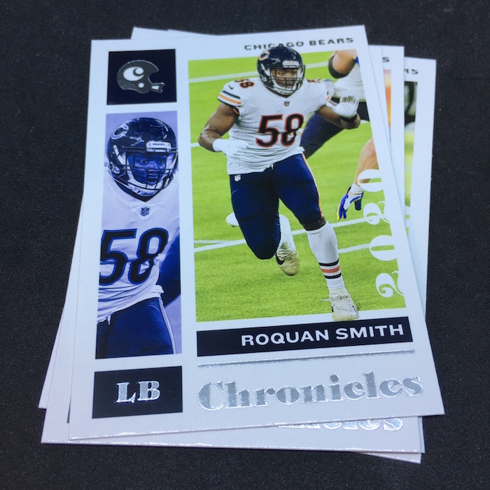 Base cards – Aaron Rodgers, John Elway, Marshall Faulk, Curtis Martin, Roquan Smith