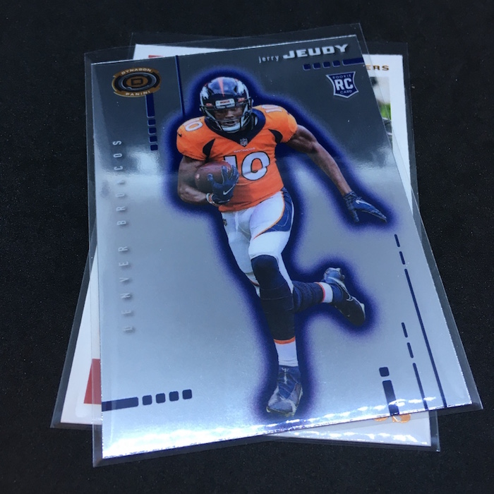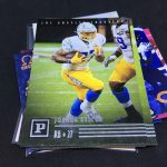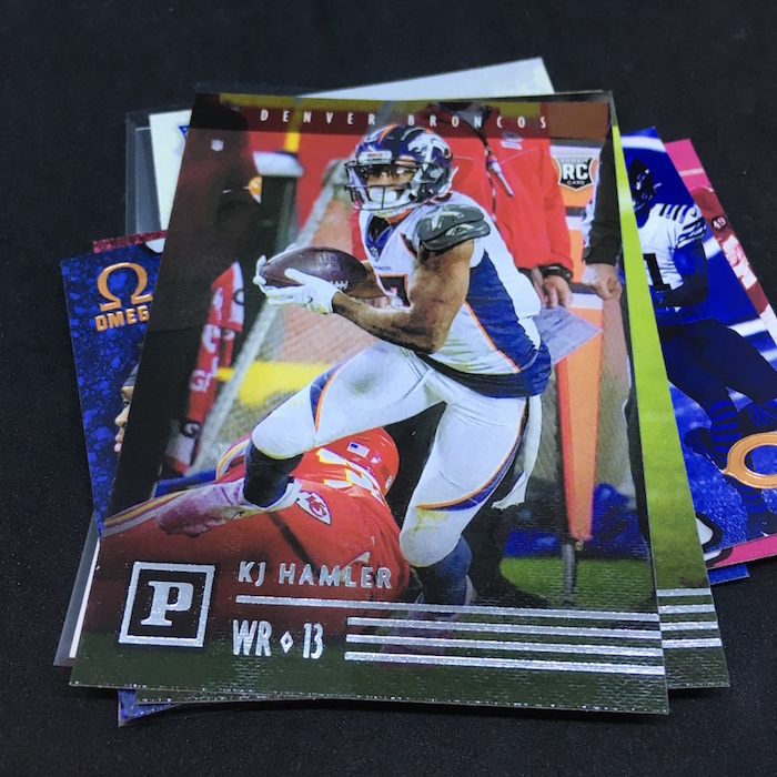 What's Buzz-worthy: They camped out, bought their kids to buy more and left nothing big for the kids but I might have gotten the last laugh pulling a Tom Brady Bronze out of a single pack since it was a limit-two scenario and I needed something else to go with this. (OK, probably not a last laugh ... but I liked that find.) Chronicles is a brand I ripped a boatload of for NBA and college football in this past year (pre-campers) but not this time as these are moving well with a loaded crop of rookies found un multiple sets in this all-in-one release. It looks like you get one Optichrome stock card per pack here (this one a Dynagon) and these are the exclusive home for Omega cards though neither of those old Pacific looks are high on my like list but this brand is ... the ability to stockpile a rookie you might like here with multiple appearances per box and then parallels and hits atop that makes this one fun. Since stuff isn't all that tough to pull here, I'll just grab singles for names I like later ... unless I happen upon some boxes of this one. It's a fun break with good money potential but I'm not ripping into pricey NFL boxes for cash cards as a collector. Flippers are liking this one in the short-term but I'll play the long game on this one and grab what I like when they've moved on to other new stuff. Hit those hobby boxes up top for a shot at some big stuff in this one. For $6 this pack delivered a lot but I don't think I would have aced it without the Brady ... after all, that's one in 100 packs ... perhaps more if they Bronzed other cards in this one. With that in mind, I think a future move to make this one a more valuable brand (across the board, beyond hits) would be to make stuff harder to pull by making all of the sets included much larger -- that would make the basic stuff tougher pulls more like it was on the Brady here. With the variety of what's included it would still be very good with even more possibilities in every pack.