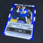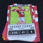 Notables on base cards: Jimmy Garoppolo, Peyton Manning, Brett Favre, Matthew Stafford, Calvin Ridley, Julio Jones, Dwayne Haskins, Terry McLaurin, Baker Mayfield, Kyler Murray, Gardner Minshew II, Dak Prescott, Josh Allen