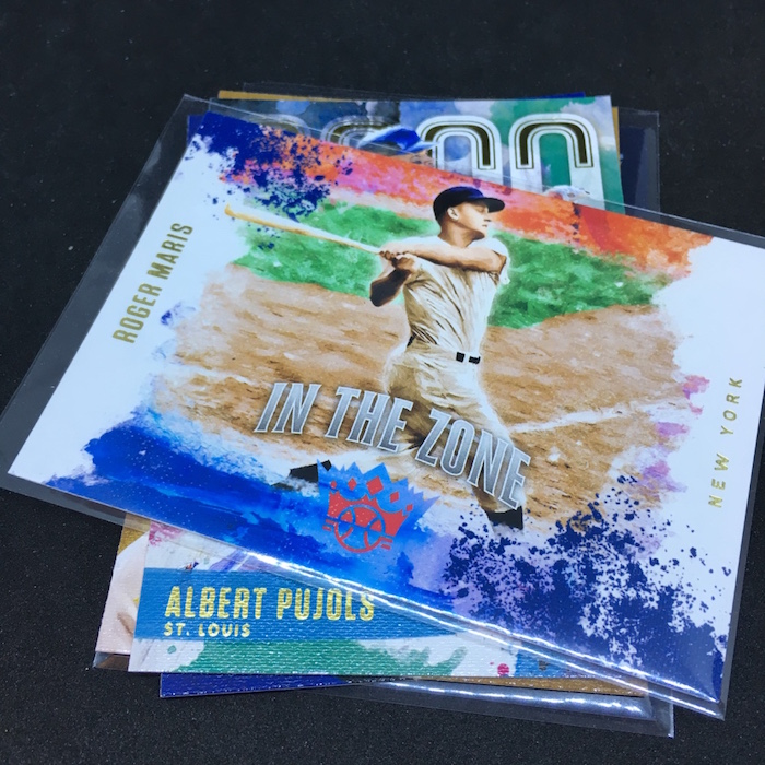 What's Buzz-worthy: Can't stop, won't stop (at least for now) with these mispacked Target boxes. I'm 6-for-6 on having Diamond Kings blasters having nearly all short-printed cards and over-delivering on inserts. They aren't the super-flashiest of rips but I don't mind them at all with this approach, which has the volumes of SPs vs. base cards essentially flipped. Instead of getting two or three SPs per box, this one included just two base cards and the rest were from Nos. 101-170, which are the short-printed cards for this brand and then inserts and a hit. Does that translate into a bunch of cash value? Perhaps in volume but most of the SPs aren't expensive right now. ... This kind of issue can make one wonder if any other types of cards will over-deliver -- one forum member said they got two hits in a blaster. (I'm 2-for-6 on hits from all Target blasters but 2-for-2 from regularly packed Walmart blasters.) ... If you're a set-builder, a hobby box and a handful of these should get you everything on the base set this year and perhaps good run on a non-parallel master set. These are also over-delivering big on the insert cards as preview info for blasters only indicated the four Blue cards and a single insert per box. ... This brand is a colorful one jam-packed with stars from the past and present with some big names among the mem cards so it could be one to watch as more people open these. Hobby boxes (link up top) are your best bet with guaranteed hits but if you like to dabble with the chance at something more for a low price then the blasters are worth a look. You never know how they might (over) deliver.