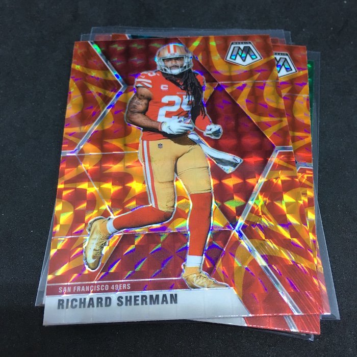 Reactive Orange Prizm parallels (5) – Len Dawson, Steve Young, DeVante Parker, Richard Sherman, Odell Beckham Jr.