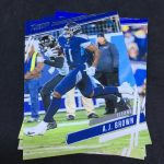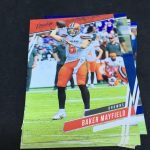 Notables on base cards: Derrick Henry, Ezekiel Elliott, Baker Mayfield, Carson Wentz, Amari Cooper, A.J. Brown, Taysom Hill, Jared Goff, Matthew Stafford, JuJu Smith-Schuster, Cooper Kupp, Julian Edelman, T.J. Watt, Maxx Crosby, Von Miller, Shaquem Griffin