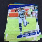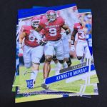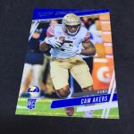 What's Buzz-worthy: My initialgraph here is a find that's apparently one in 422 packs (odds are out there on some retailer listings but not the boxes) but I'll say that I'd probably be better off with the hit that I landed in my first box of this one. My assortment of base cards was not the strongest and it paralleled my first box quite a bit despite it being a 200-card set. My rookie crop was decent this time with at least two notables -- maybe more, we'll see when a season arrives -- and my inserts here had a few notables and even a player I've met, so that's fun. I like the look of this one a lot, though the use of full-body photos on pretty much every card (it gets repetitive and some images feel stiff while others are good) does bug me. Perhaps it wouldn't with some tighter crops here and there? I like the college colors in this one -- we'll get plenty of NFL stuff at some point -- but with the NFL logos getting a simple showcase in the corner on rookies' cardboard. There are bigger box formats to consider, too, with megas out there but I think I'd do more Chronicles Draft Picks megas before going that route here -- though the NFL megas have two autos and there's always safety in volume with releases like this one so bigger boxes give you more shots at landing key names.