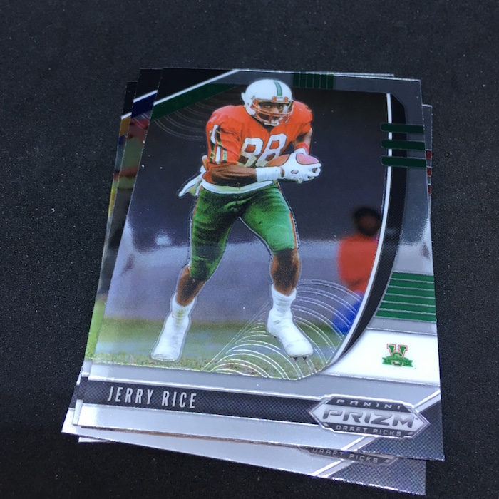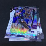 Base cards – Peyton Manning, Derrick Henry, Aaron Rodgers, Jerry Rice, Barry Sanders, Jacoby Brissett, Travis Kelce, Jarrett Stidham, Nick Bosa, George Kittle, Mark Andrews, Dwayne Haskins, JuJu Smith-Schuster, Ezekiel Elliott (C), Deebo Samuel (AA), Lamar Jackson (C), Christian McCaffrey (C)