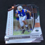 What's Buzz-worthy: Maybe it's the reality of a one-hit-points box here vs. my last break of this one, but this one felt like a bummer of sorts. I ended up turning my points into a semi-rare non-hit NBA card -- not the best pickings out there for low points and then paying shipping and handling -- but we'll see if this box feels stronger after the NFL Draft starts on Thursday. As I mentioned last time, these boxes seem loaded up with the volume -- twice the size of a blaster but three times as many Draft Picks and insert cards -- and, while the blasters that are delivering ink every time are not marked as guaranteeing anything, these boxes are marked as having an auto per and can also deliver two. Not this time ... just points. These are priced like a double blaster and actually deliver more cards than a hobby box. They're also the home of Red parallels, which I had wondered about after not seeing them out there before these arrived -- they are a natural color of parallel for a number of top teams out there. This box was lean on my team's/conference's top stars -- and I'm still 0-for-Tua this year in this brand -- but there's really good potential here if you land those top names in color spots. If your primary want is ink, hit the link up top for hobby or FOTL.
