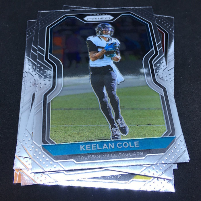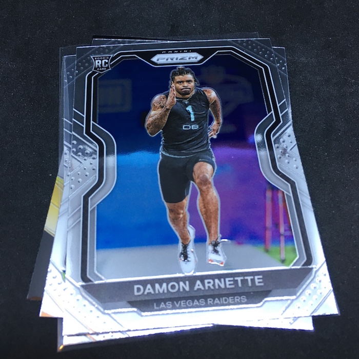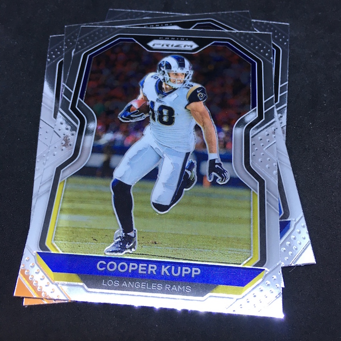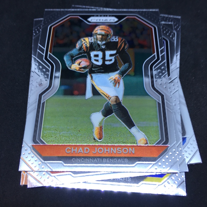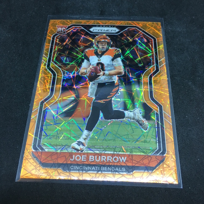 What's Buzz-worthy: Prizm has lightly reloaded at retail this week and, well, this one finally paid off big with just a single-box buy where I left the rest for the kids. The Burrow presented itself on the back of a pack and that was a win in my mind no matter what ... but I was surprised to see it be an Orange Lazer -- my favorite parallel in this one -- and that's the best color to pull for him if you ask me. Before he was hurt, this card sold for more than $200 on eBay (too high, really) but they have still recently sold for $50. If he returns and is as advertised, this is still a huge card. My last pack here included the jersey card -- also a QB with potential -- which was a plus because these blasters are not the home to a jersey card every time like the Fanatics boxes this year. My run of base cards here was not strong -- even my retirees aren't money guys -- but it doesn't matter as one card can make the box and it did. For more of my thoughts on this one, check out my other breaks.