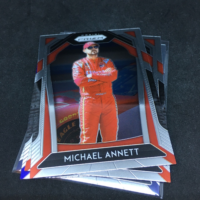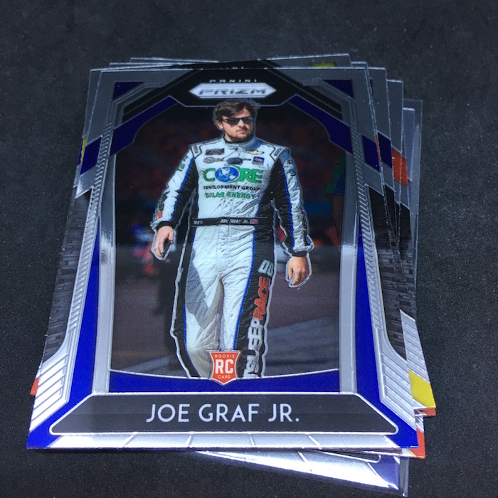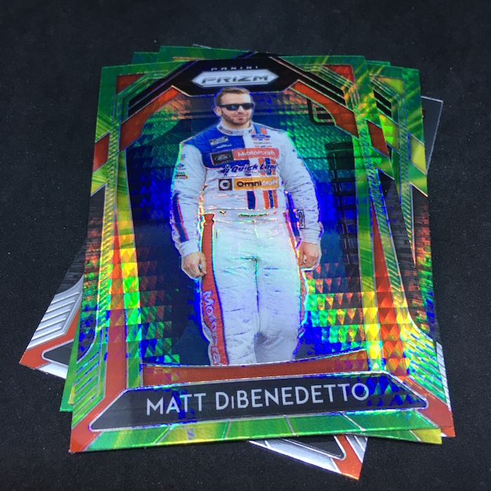 What's Buzz-worthy: This format may not deliver any guarantee hits but they deliver a ton of variety and that means potential for some fun breaks and good cumulative value if you land a run of a name or two more than once. For the suggested retail price, you can do pretty well but if you want to try for big flips, hit those hobby boxes. Variations aren't as obviously spotted on the card fronts this time -- if you flip them over and see the back photo lined with checkered flags then you have an SP. They are noted in the gallery below for 10 drivers but it appears those cards have parallels, too. (I'd assume across the board on all versions but have not seen that noted anywhere officially.) This box's versions actually had their nicknames as the card number ... so there are other ways to know you have one. That wasn't the case in my last box. Highlights this time are the Jimmie Johnson base card and Prizm parallel as well as the Deegan appearance though none of them are really money cards this time. My run of base cards was pretty rough other than the Johnson card if you ask me. ... The mix of past, present and future stars here is one that is strong -- and it may feel like its plentiful now. But, once they dry up (and they could given demand for pretty much anything on Prizm stock these days) there could be some money made on key names' mid-range rare stuff as well as the obvious scarce cards and hits.