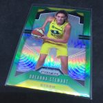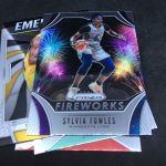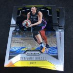 What's Buzz-worthy: My final of these boxes from the first and only wave of boxes I saw hit retail include a Green of a top na,e and some appearances from some young notables who are probably not household names. The Stewart card essentially pays for the box -- some higher, some slightly lower -- and that's all you can ask for is to land a card that's around $20 to be a win in my book. This one isn't perhaps as flashy of a box compared to others I ripped -- I had two with numbered parallels, one with ink and one with a notable Stewart teammate in Silver -- but it wasn't bad. ... As mentioned before, Prizm possibilities in these include Silvers, Greens and Green Pulsars and that's pretty much it across the board for all inserts (Dominance, Widescreen, Fireworks, Fearless, Far Out, Emergent, Get Hyped). Autographs found in blasters are only Green Prizm Signatures cards. There's also big potential here with prices on Sabrina Ionescu cards crazy for rarer pulls and even for mid-range stuff. If you land the right names here, you're golden ... it's a low-risk, high-reward scenario with some luck.