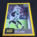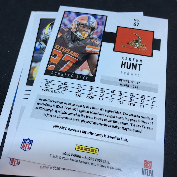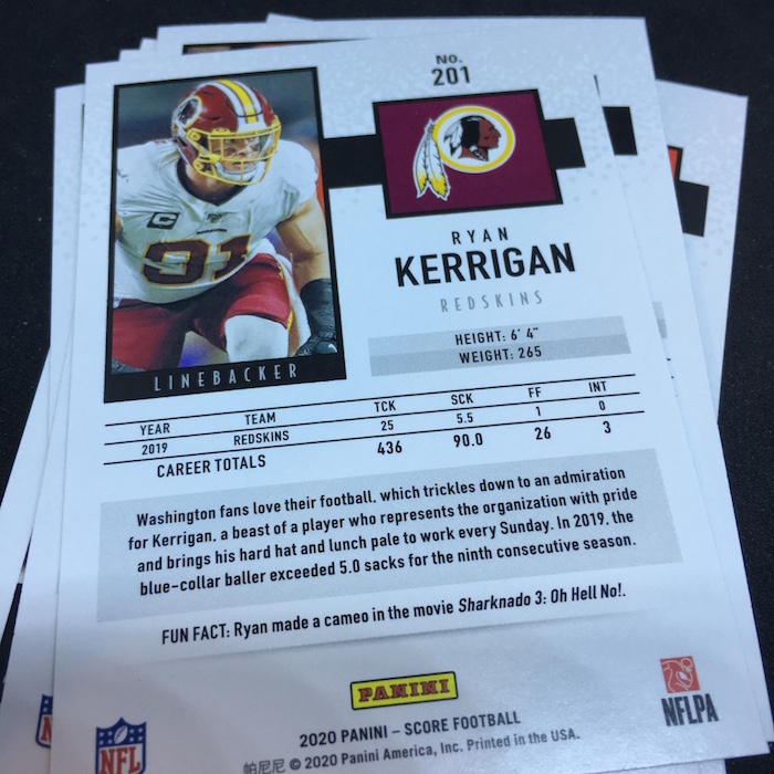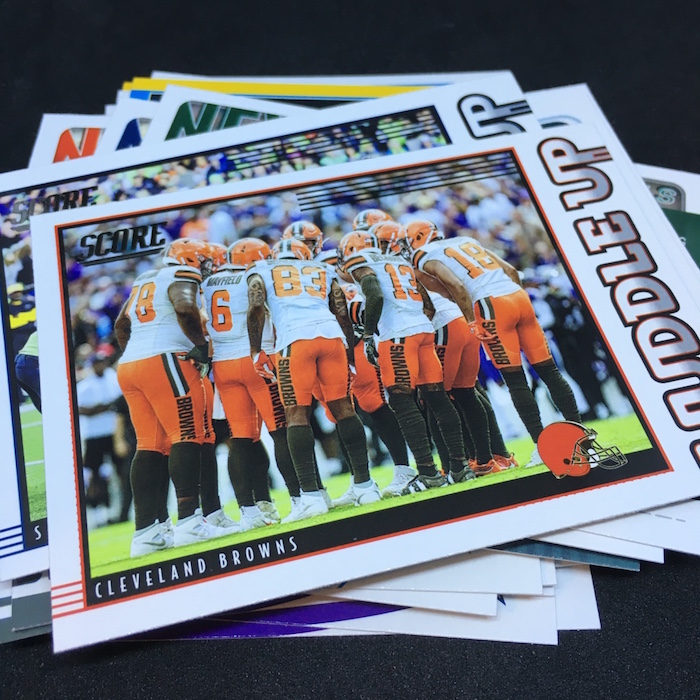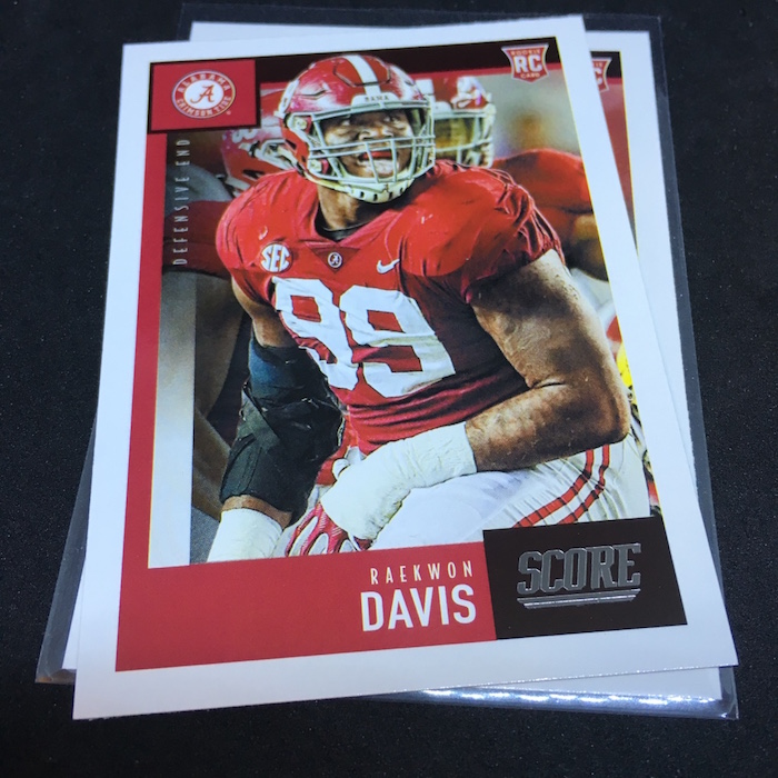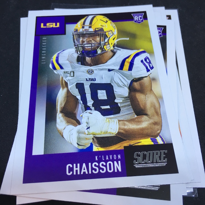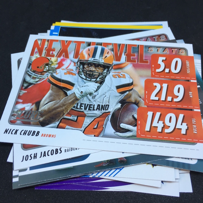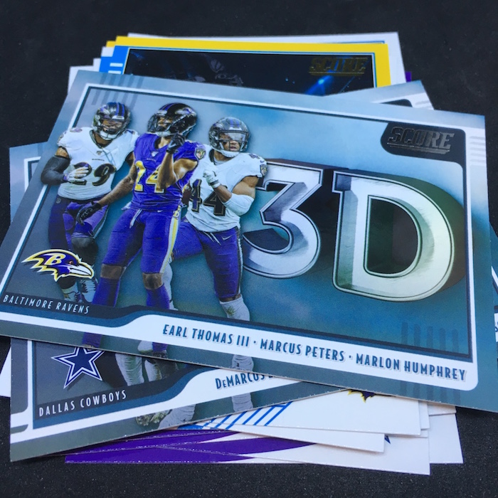What's Buzz-worthy: This hobby staple is back and while the base design is a bit blocky it's an improvement upon the tweaked 1989 version that was done last year. This one can include some very strong photos in those semi-heavy frames and a deep checklist offers up looks at players you won't find elsewhere during the football-card season. The inserts can be a highlight here in a box that includes a hit every time -- with ink possible -- at a price that's about the same as a single hobby pack right now (those offer a very strong shot at ink and plenty more). The hit this time was from an interesting set as it spotlights career firsts for a number of players. (The swatch isn't from that moment but I like focusing on details. It makes the cards more interesting.) The base set's backs also include some fun details as their stat lines and bios are joined by a "fun fact" -- check out the gallery for a few of those oddities. About the only thing I think is missing here is a college notation for the veterans but most of the other necessary basics are found here. The hot rookie class will make even these vanish fast, though they are still noted with college teams here. All in all, it feels about right for a Score release and it's likely a simple release I'll dabble with more this year vs. last.