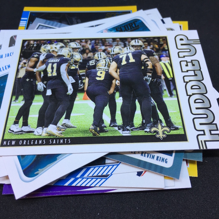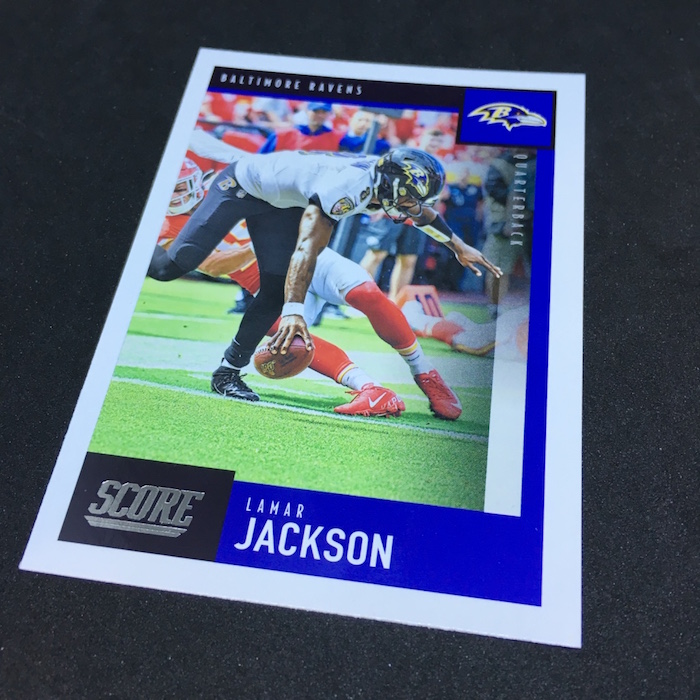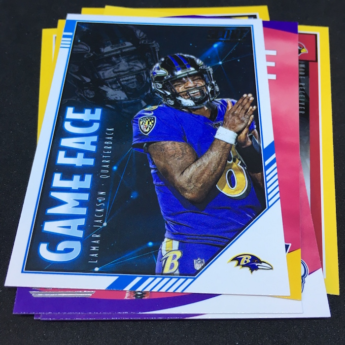 Notables on base cards: Lamar Jackson, Daniel Jones, Mark Ingram, Ezekiel Elliott, Gardner Minshew, Derek Carr, Saquon Barkley, J.J. Watt, Kyle Allen, Aaron Donald, Baker Mayfield, Sammy Watkins