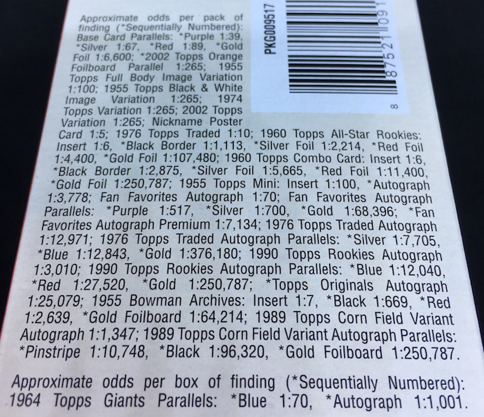 Packs per box: 8 (seven standard packs, one 1964 Topps Giant pack)
